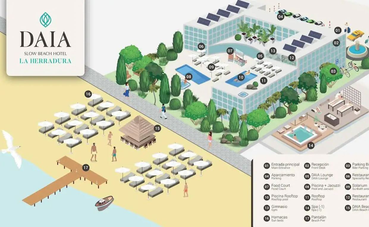 Por su parte, el teniente alcalde de Turismo, Daniel Barbero, ha recordado que este hotel está ubicado en una parcela de 10.882 m2 junto a la desembocadura de río Jate y se construirán 19.600 m2 de obra, de las cuales se destinarán 2.000 m2 a centros culturales y docentes para dar servicio a todos los ciudadanos, 3.600 m2 a zonas verdes y públicas, como jardines y parques, y 3.917 m2 para red viaria y áreas peatonales.