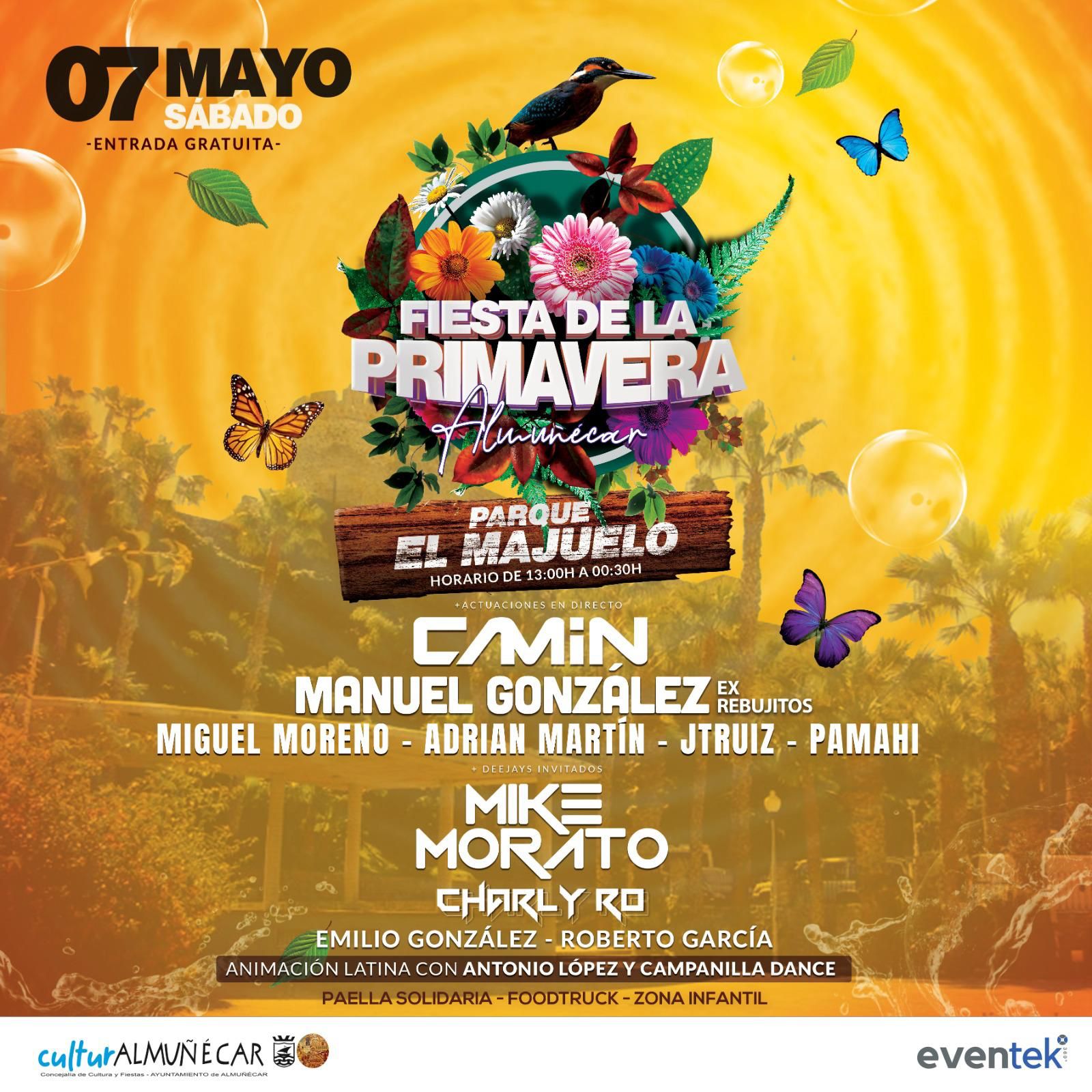 El parque El Majuelo de Almuñécar acoge este sábado 7 de mayo la Fiesta de la Primavera que celebra la Concejalía de Cultura y Fiestas del Ayuntamiento de Almuñécar, con la que se pretende “aglutinar a los jóvenes y al mismo tiempo promocionar a los artistas locales que triunfan con los ritmos destacado que marcan el panorama musical actual”, según el edil Alberto García Gilabert, durante la presentación de la misma, donde estuvo acompañado por Pablo Lamelas, representante de Eventek, que coordina el evento.