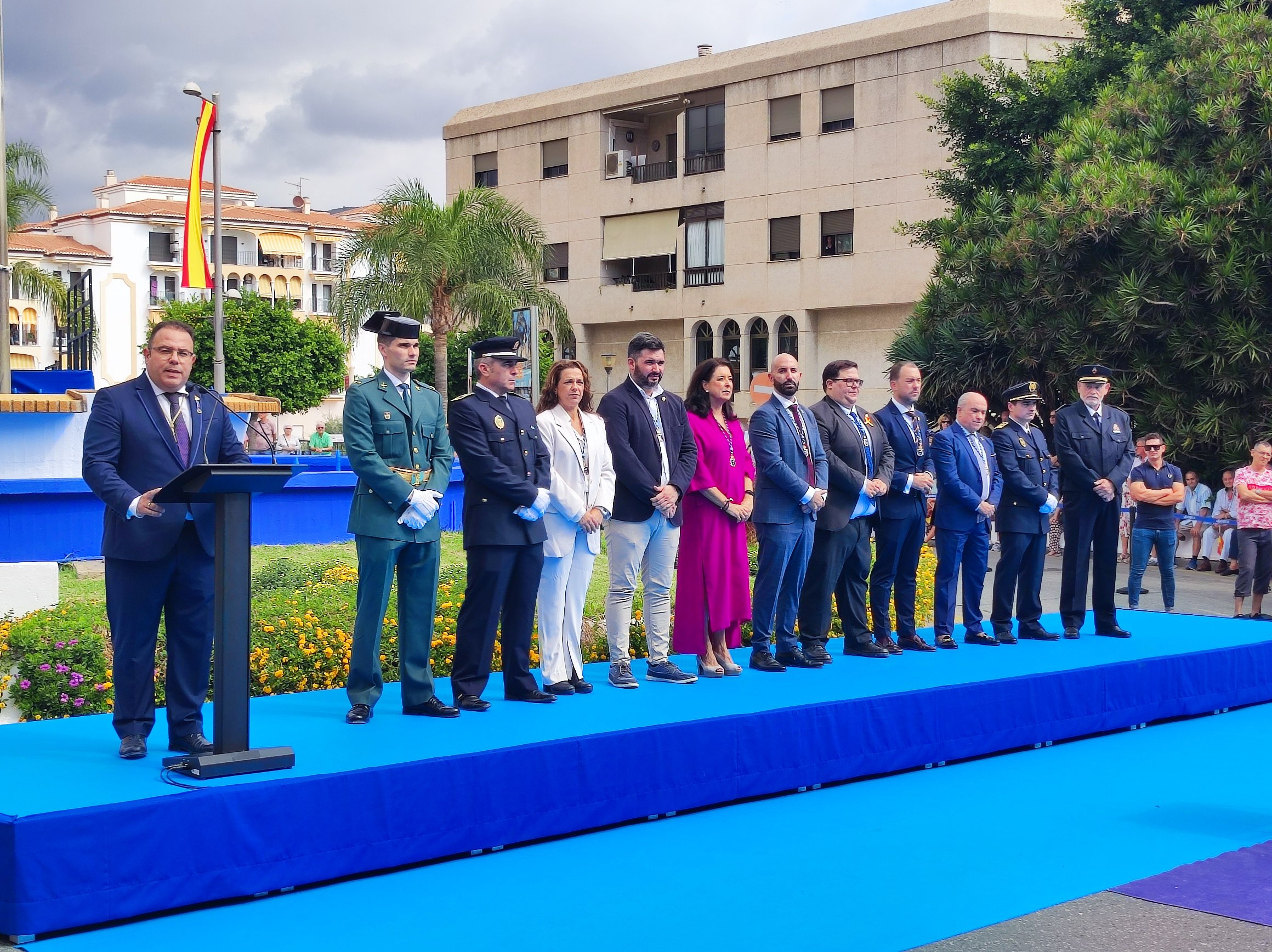 El regidor sexitano, que ha estado acompañado por la mayoría de corporativos del equipo de gobierno y los jefes de Bomberos y Protección Civil Local, ha manifestado que este día de la Fiesta Nacional “nos permite reconocer el orgullo de pertenecer a una nación como España, proyecto de personas basado en la unidad y la solidaridad, una nación con pasado, presente, futuro”, dijo.