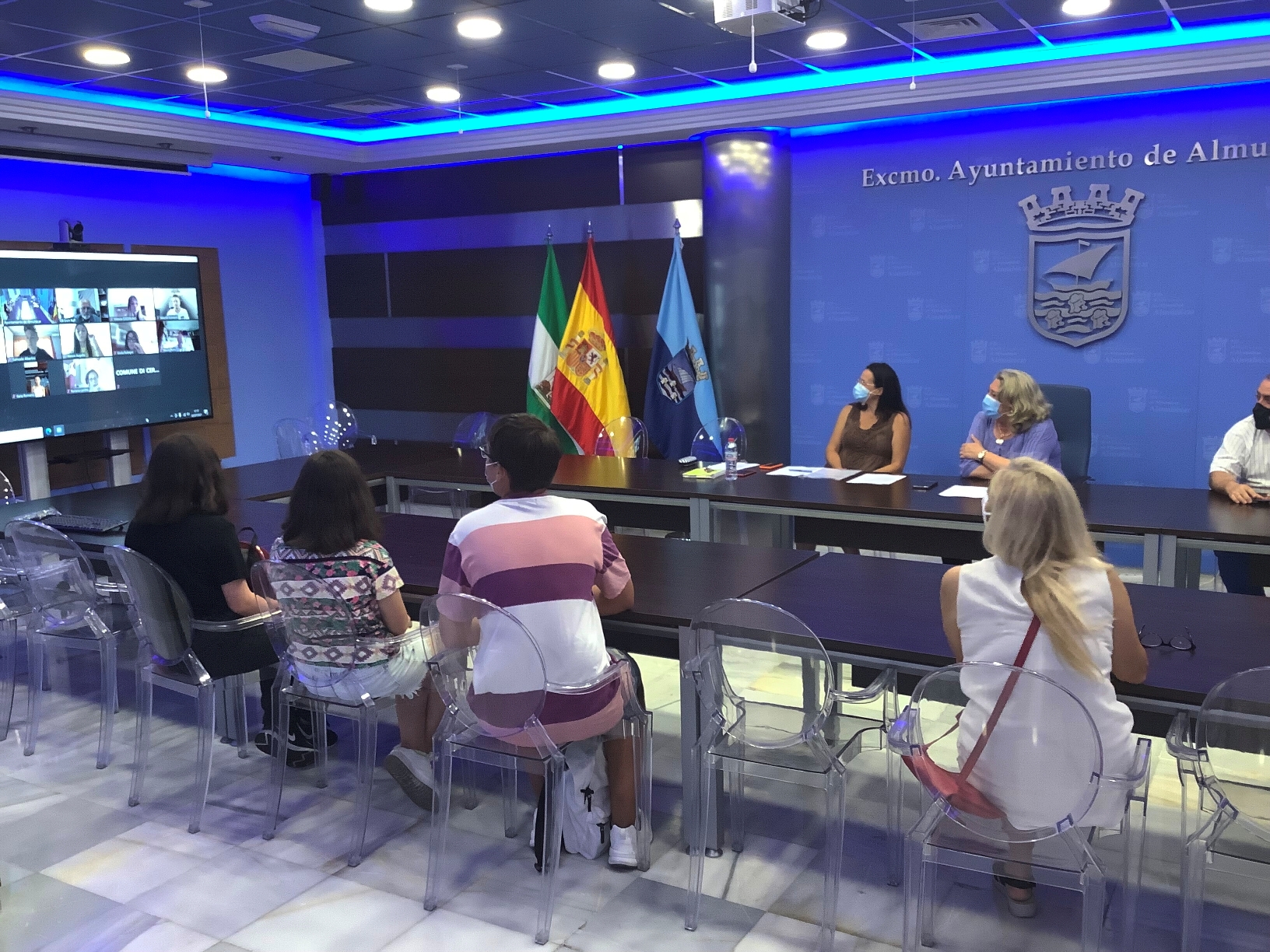 La alcaldesa de Almuñécar, Trinidad Herrera Lorente ha presidido y abierto el encuentro celebrado este viernes entre alumnos y profesores del IES Puerta del Mar con otros de Livry-Gargan, Fürstenfeldbruck y Cerveteri para intercambiar sus experiencias en relación al desarrollo del curso escolar durante la pandemia.