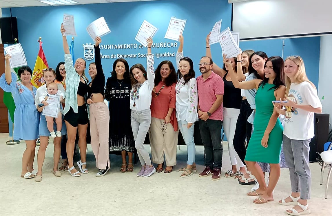 Con la entrega de diplomas a las participantes se ha clausurado el curso básico de español que Ayuntamiento de Almuñécar ha ofrecido a 14 personas ucranianas acogida en el municipio sexitano “con el fin de facilitar la interrelación en el entorno de las mismas”, según manifestó la edil de Servicios Sociales e Igualdad, Maria del Carmen Reinoso