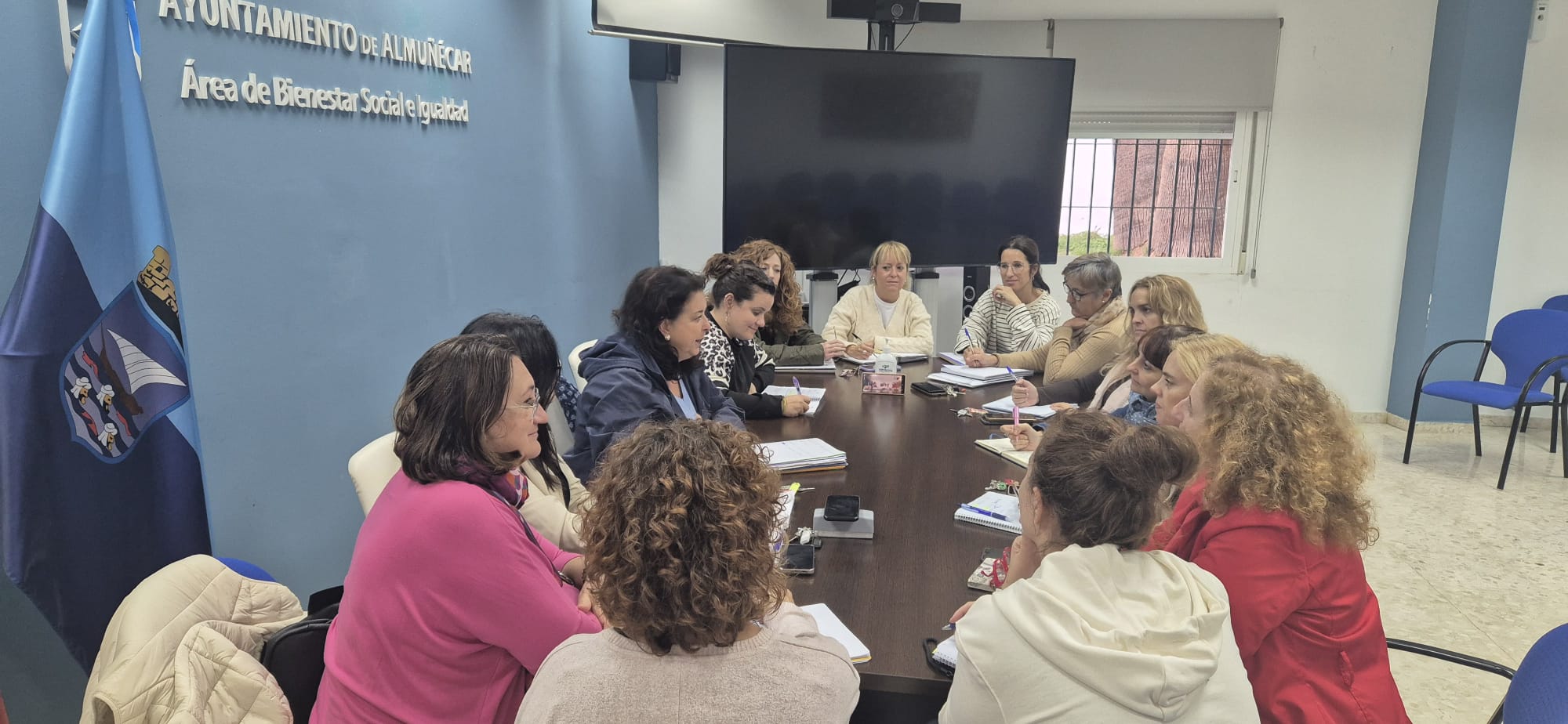 Para coordinar el plan de respuesta ante la alerta naranja por fuertes lluvias, las concejalas de Servicios Sociales y Seguridad Ciudadana, Mª Carmen Reinoso y Mª Carmen Martín Orce, respectivamente, se reunieron con la directora del Centro de Servicios Sociales de Almuñécar, Nieves Aragón, las técnicas del Servicio de atención a Personas Mayores, Elena Alaminos, Oliva López y Ana Gómez, las coordinadoras de la empresa EDIA Social, Eva Ruiz y María Victoria Berna y la técnico de prevención de riesgos laborales, Plácida Martín, y de la empresa OBOLO, Sandra Del Rio.
