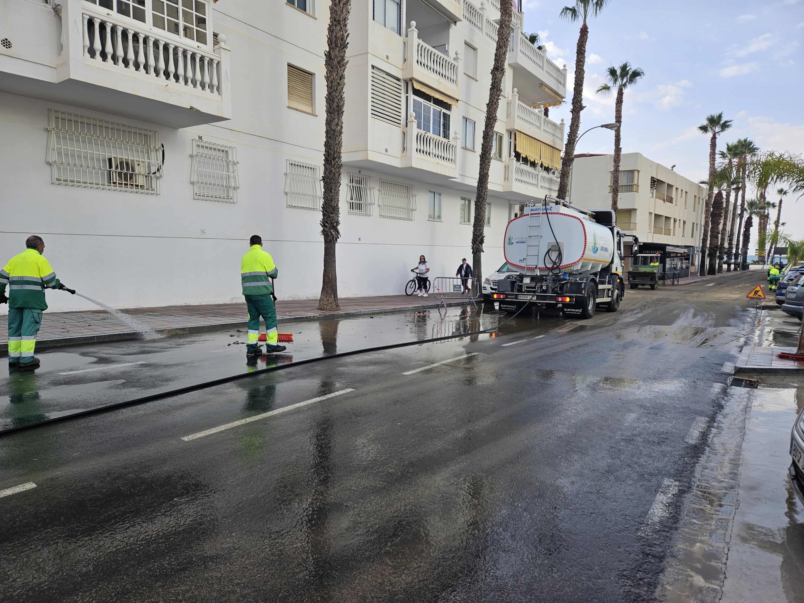 Ruiz Joya ha explicado que “desde las 6:30 horas de la mañana, los servicios de limpieza están despejando los restos de barro de las calles más afectadas, que se concentran en las inmediaciones de las desembocaduras de Río Jate y Río Seco.