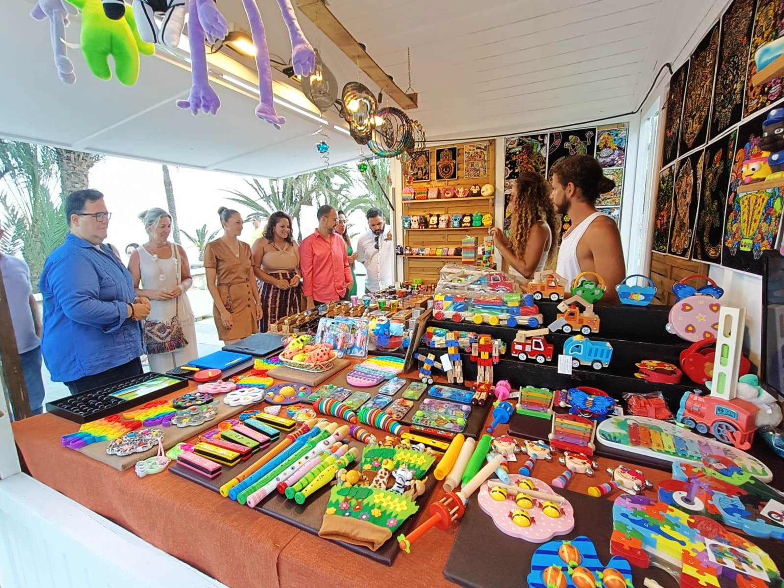 “El Mercado de Artesanía, que estará operativo hasta mediados de septiembre y abierto al público de 7 de la tarde a 12 de la noche, cuenta este año con algunas destacadas novedades. La primera que este año se suma también el paseo de Velilla con 17 casetas-stand de 6 m2 cada una. La segunda, que se amplía la cantidad de casetas-stand en el paseo de San Cristóbal hasta las 30 unidades” según informó edil de Comercio, Lucia González, que acompañada de la presidenta de ACOS, Remedios Rico, asistieron del recinto en la playa de Velilla, junto a los ediles responsables de Comercio, Cultura, Actividades y Medio Ambiente.