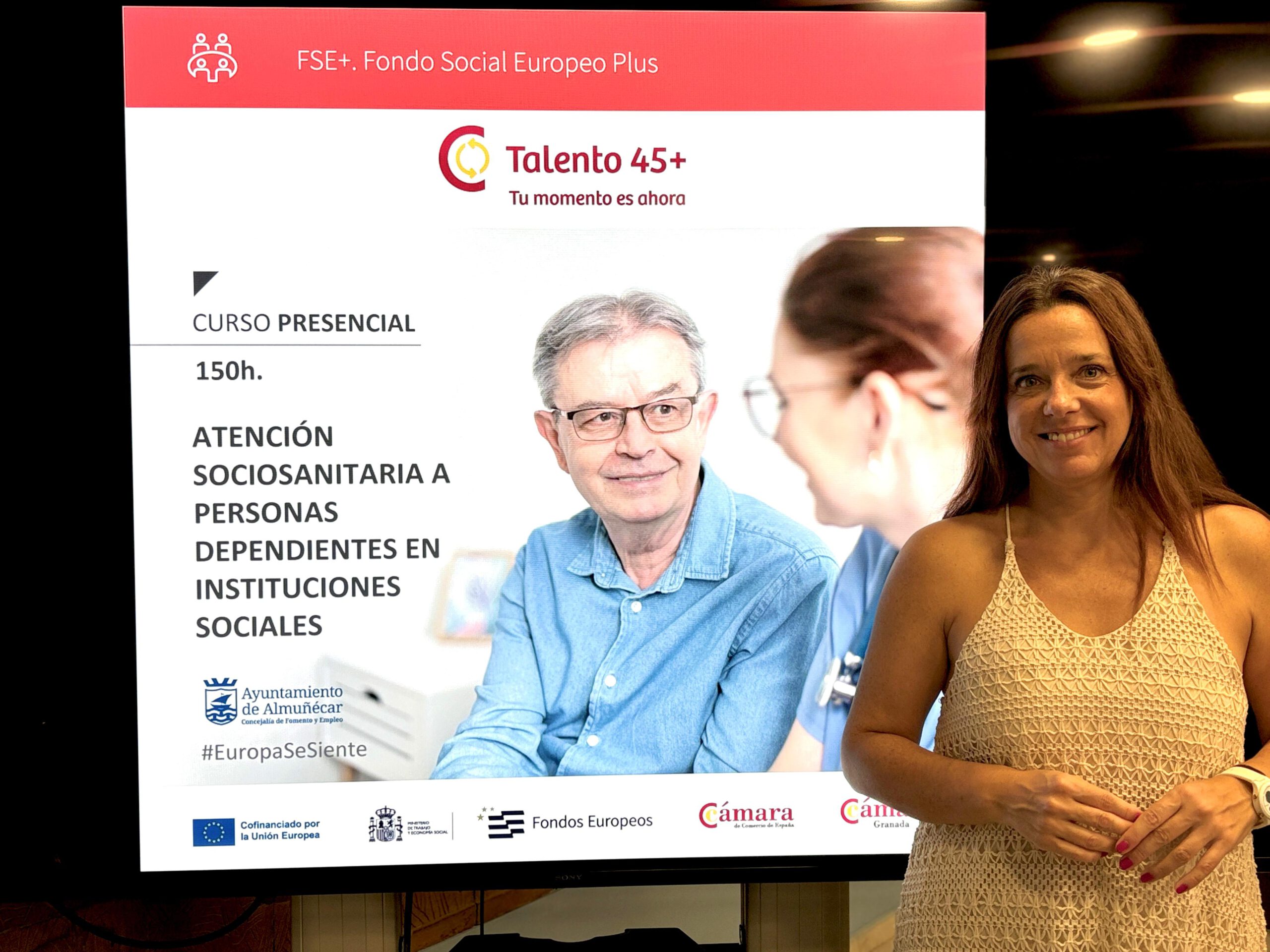 La edil de Fomento y Empleo del Ayuntamiento de Almuñécar, Beatriz González Orce, ha informado de que está abierto el plazo de presentación de solicitudes para la realización de un nuevo curso de Atención Sociosanitaria a Personas Dependientes en Instituciones Sociales, dirigido a personas desempleadas mayores de 45 años y que consta de 300 horas presenciales, divididas en dos partes de 150 horas cada una.