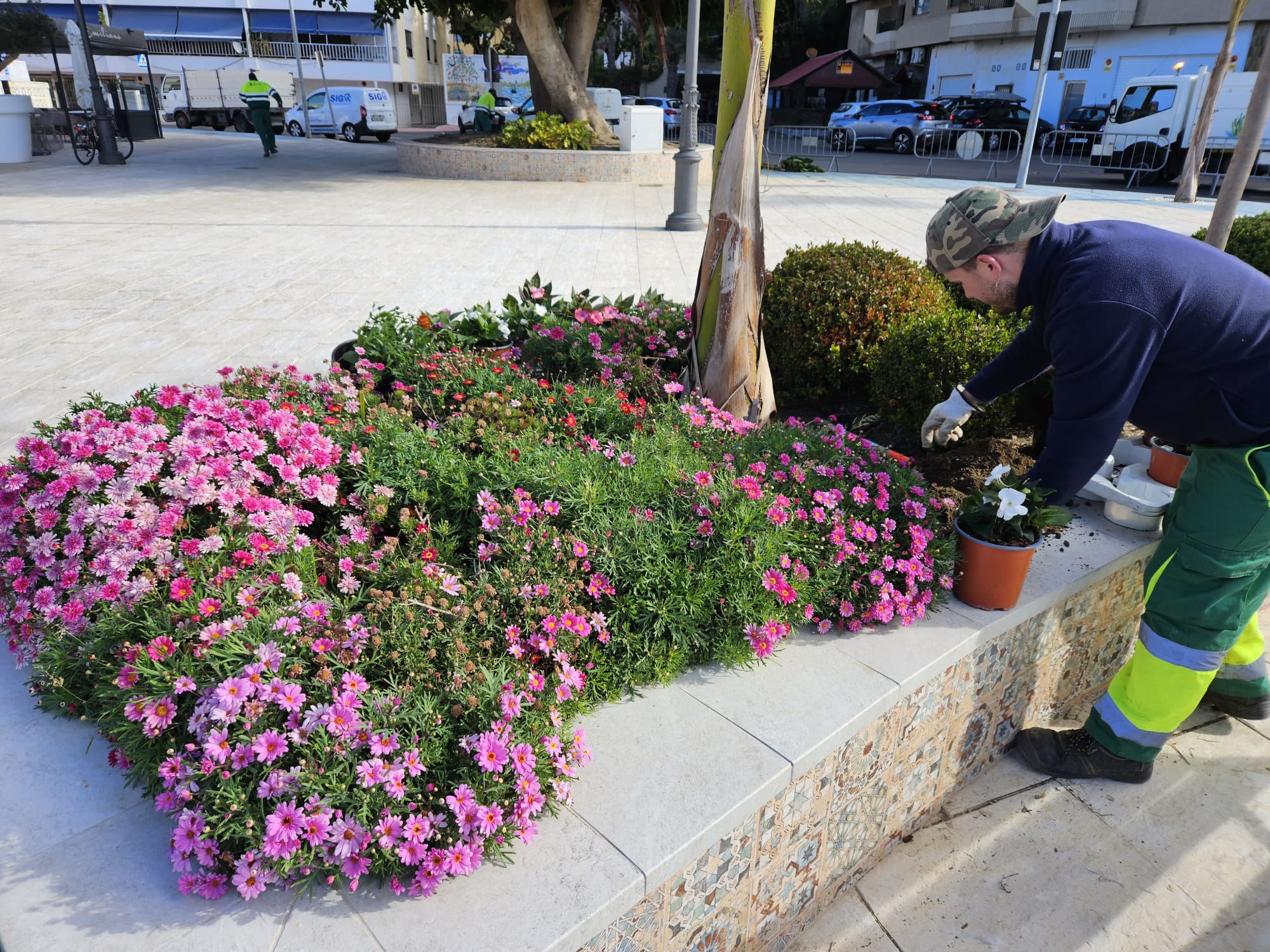 El Ayuntamiento de Almuñécar pone en marcha un plan de mejora de jardineras, dotándolas de color, con la plantación de más de 3.000 planta con flores hasta la primavera, de las que hasta la fecha se han plantado unas 1.000, según informa el concejal de Agricultura y responsable de parques y jardines, Carlos Ferrón.