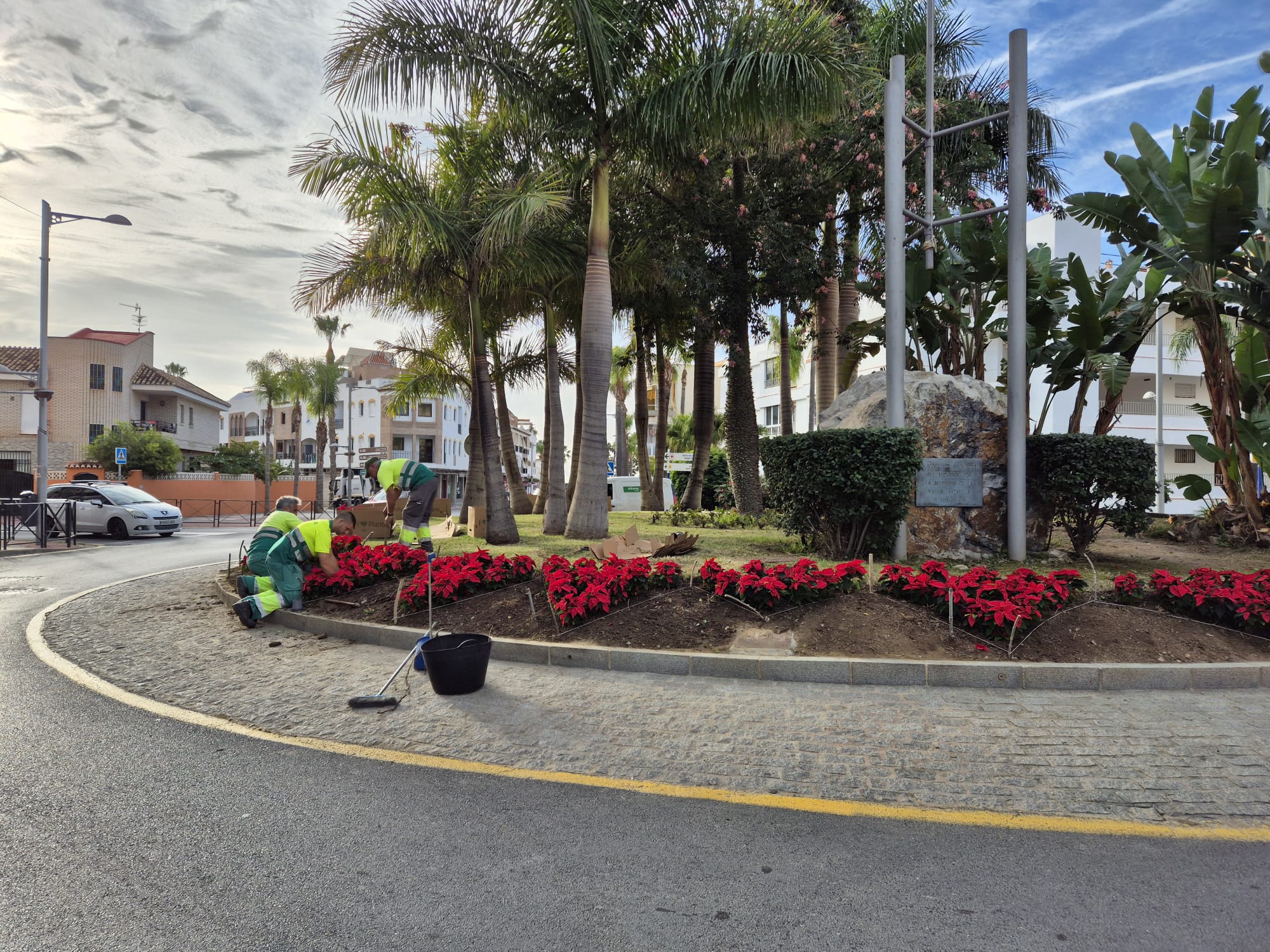 El concejal de Parques y Jardines, Carlos Ferrón, ha anunciado que, durante esta semana, el Ayuntamiento de Almuñécar y la empresa concesionaria del mantenimiento y conservación de los parques y jardines municipales, Althenia, están llevando a cabo la plantación de pascueros en jardineras de paseos del centro urbano de Almuñécar y La Herradura, dando color y anunciando la llegada de la Navidad