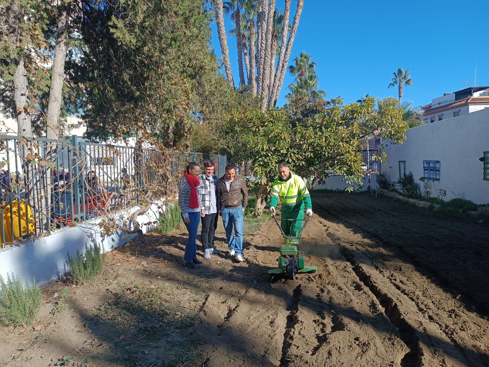 González, que ha girado visita junto al edil de Agricultura, para conocer las instalaciones de los huertos de varios colegios, ha supervisado los preparativos que ya se vienen ejecutando al tiempo que ha aportado las semillas y plantas para el sembrado de los citados espacios.