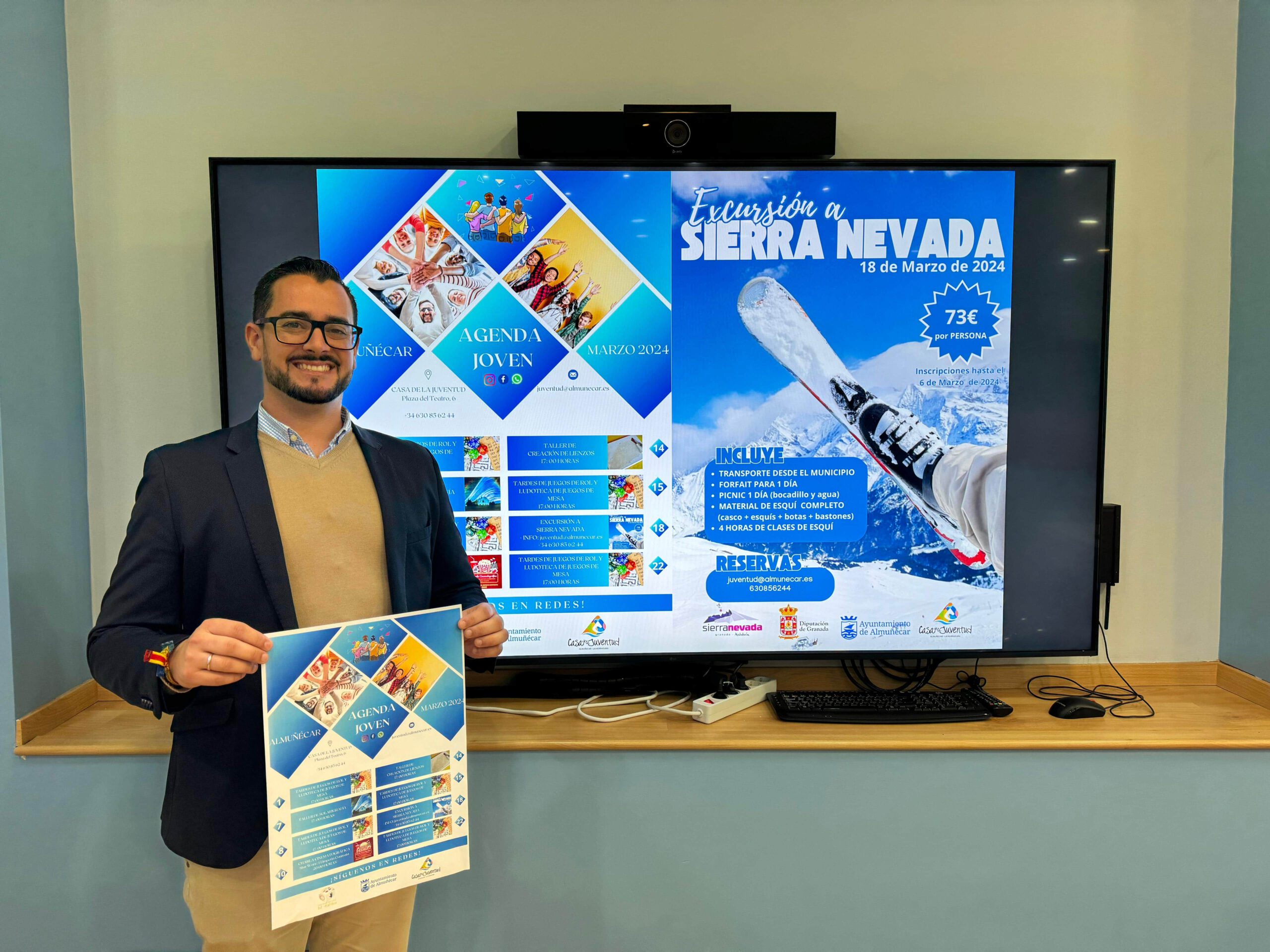 “El día 18 tendremos una actividad muy especial, porque hemos organizado una excursión a Sierra Nevada, donde pasaremos un gran día disfrutando de la nieve”. Una actividad que incluye transporte, Fortfait, picnic y material de esquí completo (casco, esquíes, botas y bastones) y 4 horas de clases con profesionales especializados por solo 73€. Las reservas de plazas se podrán hacer hasta el 6 de marzo. El concejal ha agradecido la colaboración en esta actividad de Cetursa y la Diputación de Granada.Francisco Rodríguez, ha invitado a todos los jóvenes de Almuñécar a que “se apunten y participen de estas actividades”, y también, ha pedido a los jóvenes que tengan alguna idea o inquietud a que se “pasen por la casa de la Juventud, en calle Arco del Cine y nos la propongan, que seguro estudiaremos la forma de ponerla en marcha”.