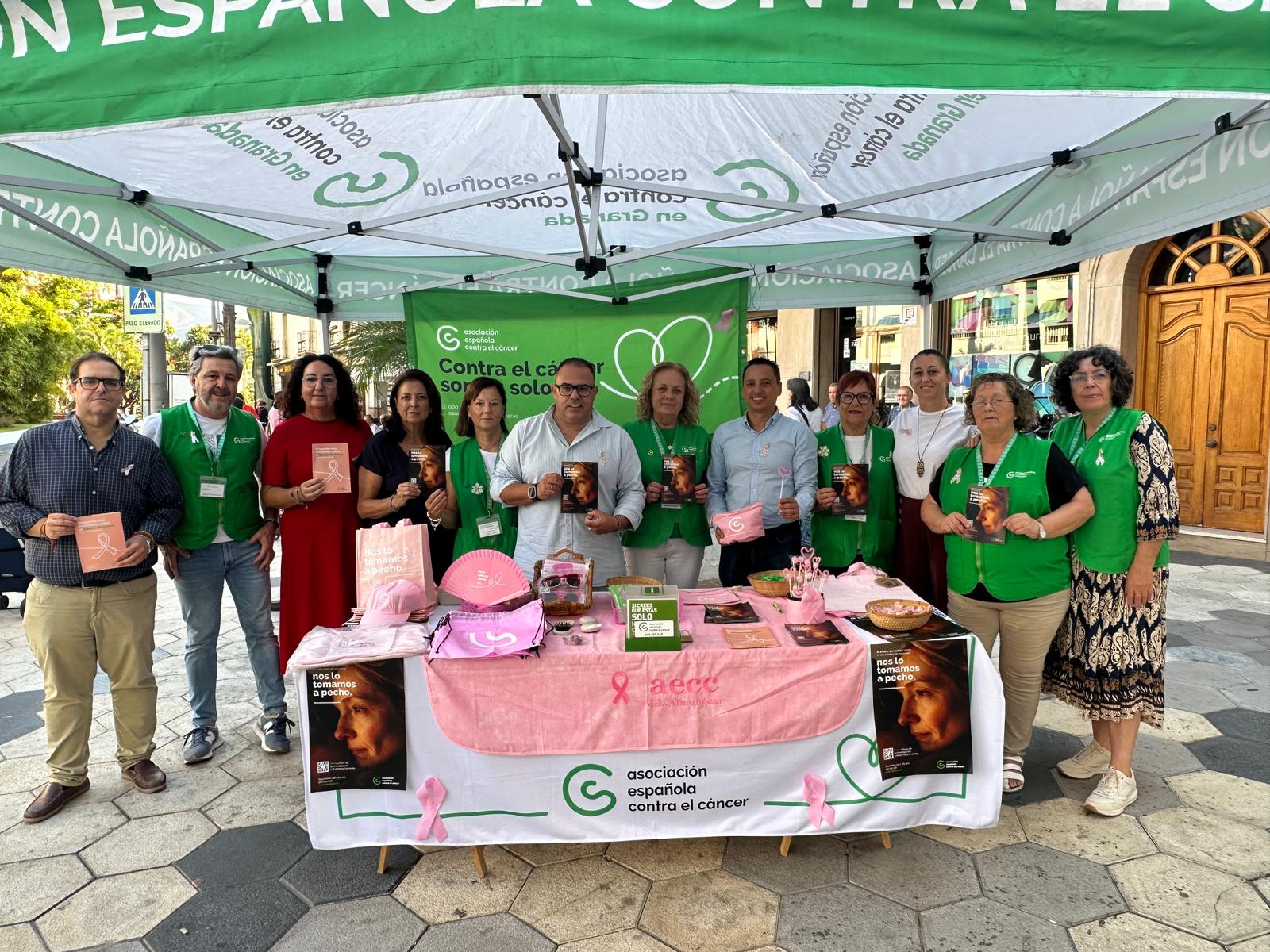 El Ayuntamiento de Almuñécar se suma, un año más, a los actos organizados con motivo del Día Mundial contra el Cáncer de Mama, que se conmemora el 19 de octubre, colaborando con la Asociación Española Contra el Cáncer (AECC) y su delegación local, dirigida por Conchi García, en una programación de actividades orientadas a la sensibilización y apoyo a las personas afectadas por la enfermedad.