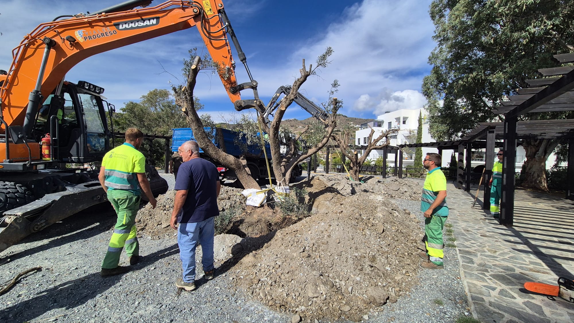 La intervención del área de Parques y Jardines del Ayuntamiento de Almuñécar ha conseguido salvar de la tala a una veintena de olivos centenarios que se encontraban en el solar de una nueva promoción urbanística, cerca de la bajada de Playa de Cabría, detrás del Hotel Playa Cálida.