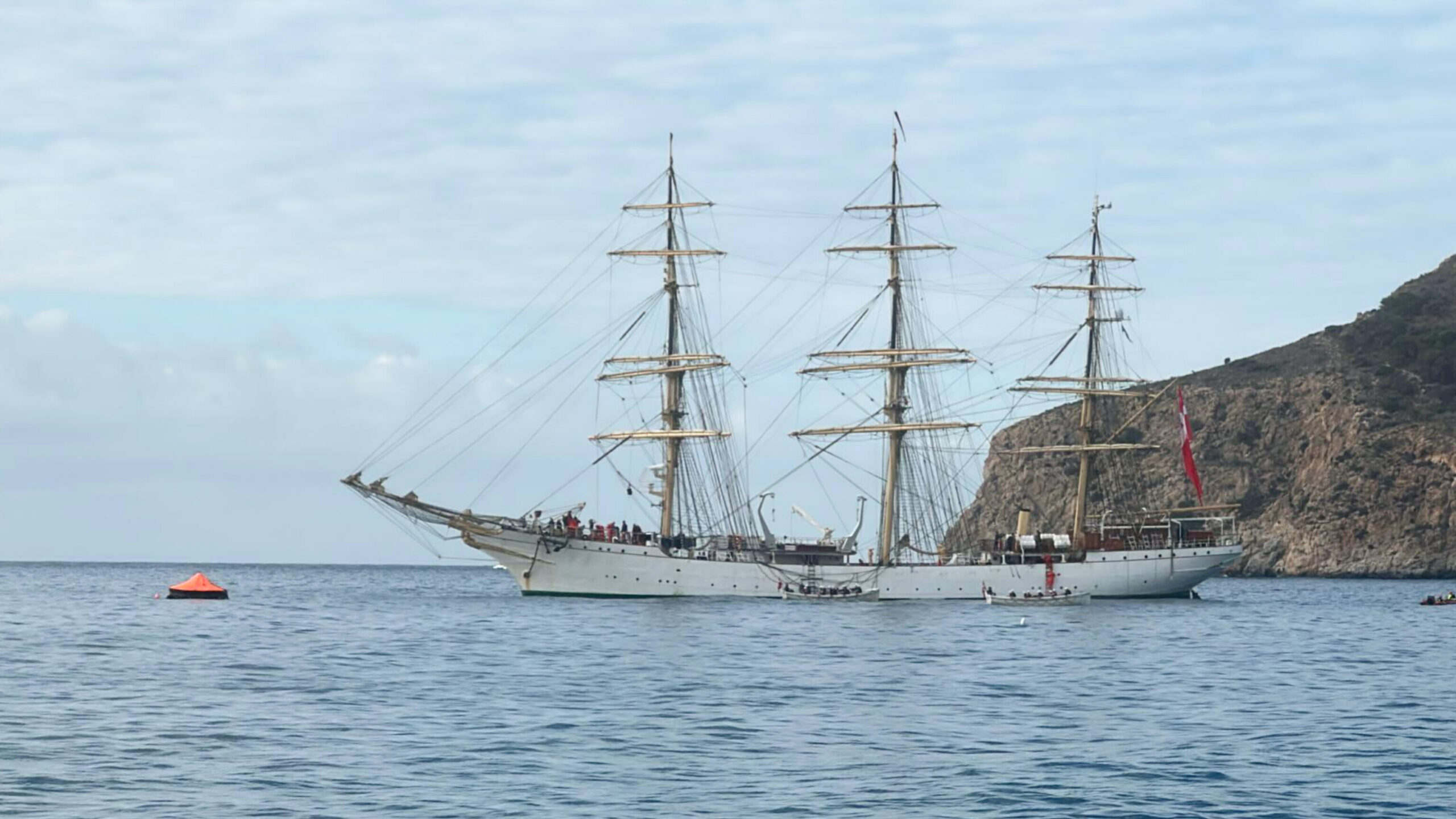 El barco escuela “Danmark” recaló ayer en la bahía herradureña lleno de jóvenes que se están formando como tripulantes para la marina mercante. La embarcación mide mide 77 metros de eslora por 10 de manga y fue construida en 1932 por el Estado danés. Se trata de uno de los veleros de instrucción naval más antiguos que aún navegan en la actualidad, siendo todo un veterano de la Segunda Guerra Mundial, tras servir con los guardacostas estadounidenses después de que la Wehrmacht invadiera su país.