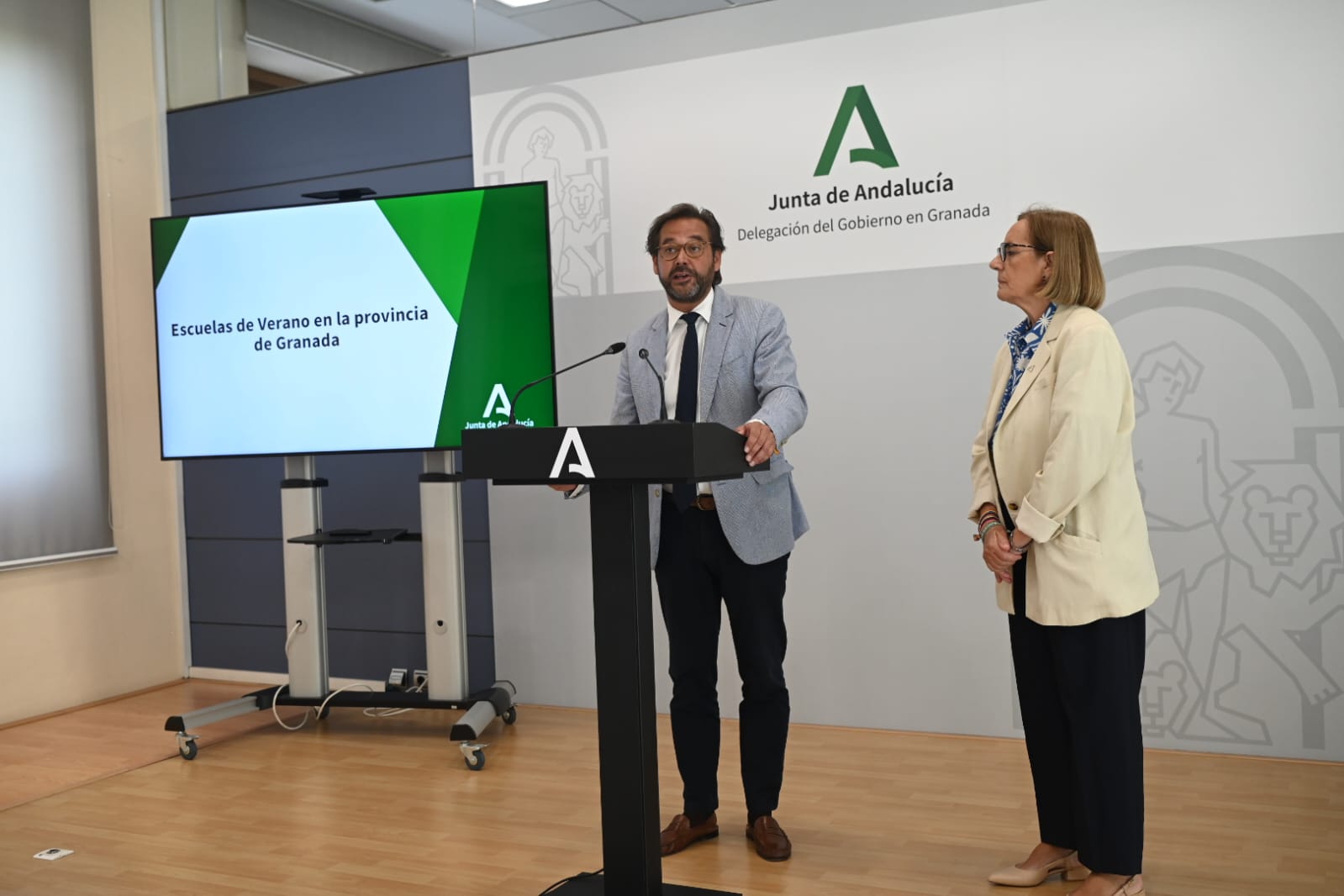 El delegado del Gobierno, Antonio Granados junto a la delegada de Inclusión Social, Juventud, Familias e Igualdad, Matilde Ortiz, han informado sobre las escuelas de verano subvencionadas con fondos autonómicos en la provincia de Granada, en total 20 que son gestionadas por 10 entidades y de la que se benefician 1.179 menores, residentes en 15 municipios como son Pinos Puente, distrito norte de Granada capital, Baza, Loja, Motril, Fuente Vaqueros, Darro, Cuevas de Guadix, Guadahortuna, Iznalloz, Benalúa, Huéscar, Montefrío y Santa Fe.