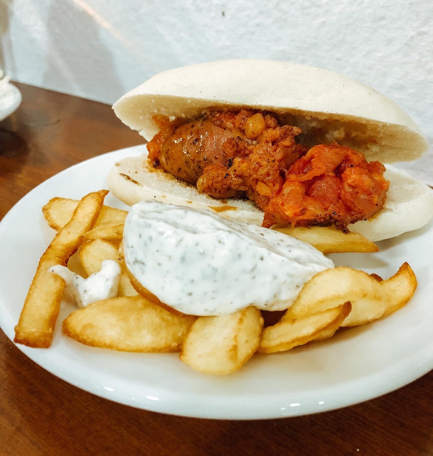 Empezamos probando la hamburguesa. Sencillamente deliciosa. Seguimos con el pepito de carne con tomate, tierno y bastante dulce al paladar. Continuamos con el chorizo al pan, una auténtica pasada para los amantes del sabor de la barbacoa como nosotros. Es digno de mención el acompañamiento en prácticamente todas las tapas de patatas fritas semigruesas y salsa, un picoteo como Dios manda.