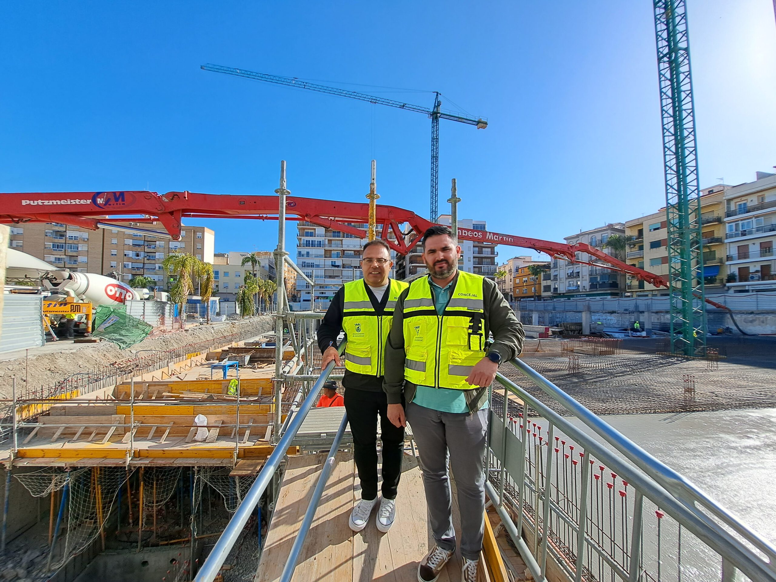 El alcalde de Almuñécar, Juanjo Ruiz Joya, acompañado por el concejal de Urbanismo, Javier García, ha visitado las obras del mercado municipal de Almuñécar, en el que ha comenzado a hormigonarse el último tramo de la losa del parking y ya se está montando el primer tramo de la losa de la planta baja, a nivel del callejón del Virgo y avenida de Cala, que será el principal