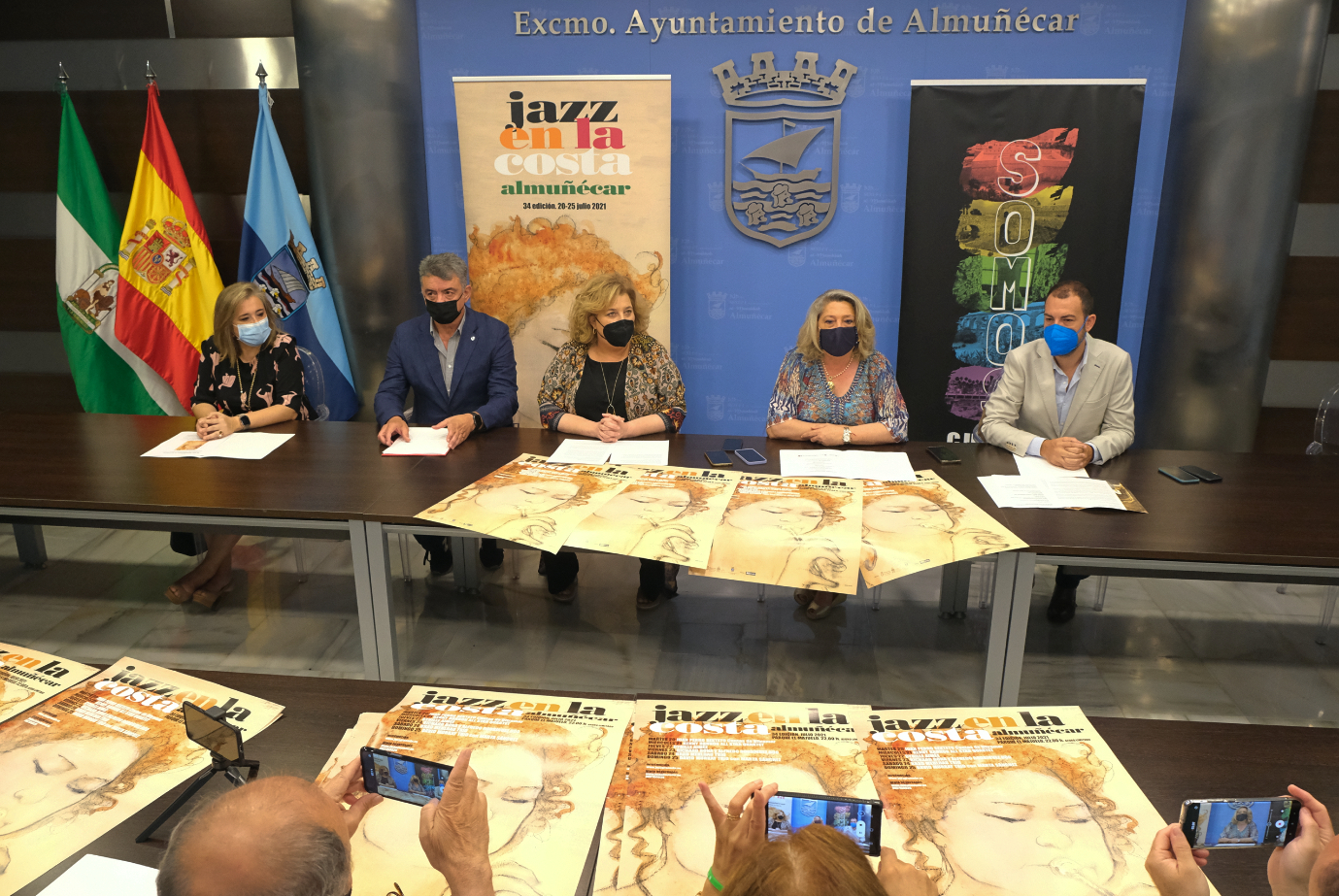 Almuñécar ha presentado en el Ayuntamiento la 34 edición del Festival Jazz en la Costa que se celebrará del 20 al 25 de julio. El acto ha contado con la presencia de la alcaldesa, Trinidad Herrera, el concejal de cultura, Alberto Gilabert, la diputada de cultura, Fátima Gómez y el director del festival, Jesús Villalba