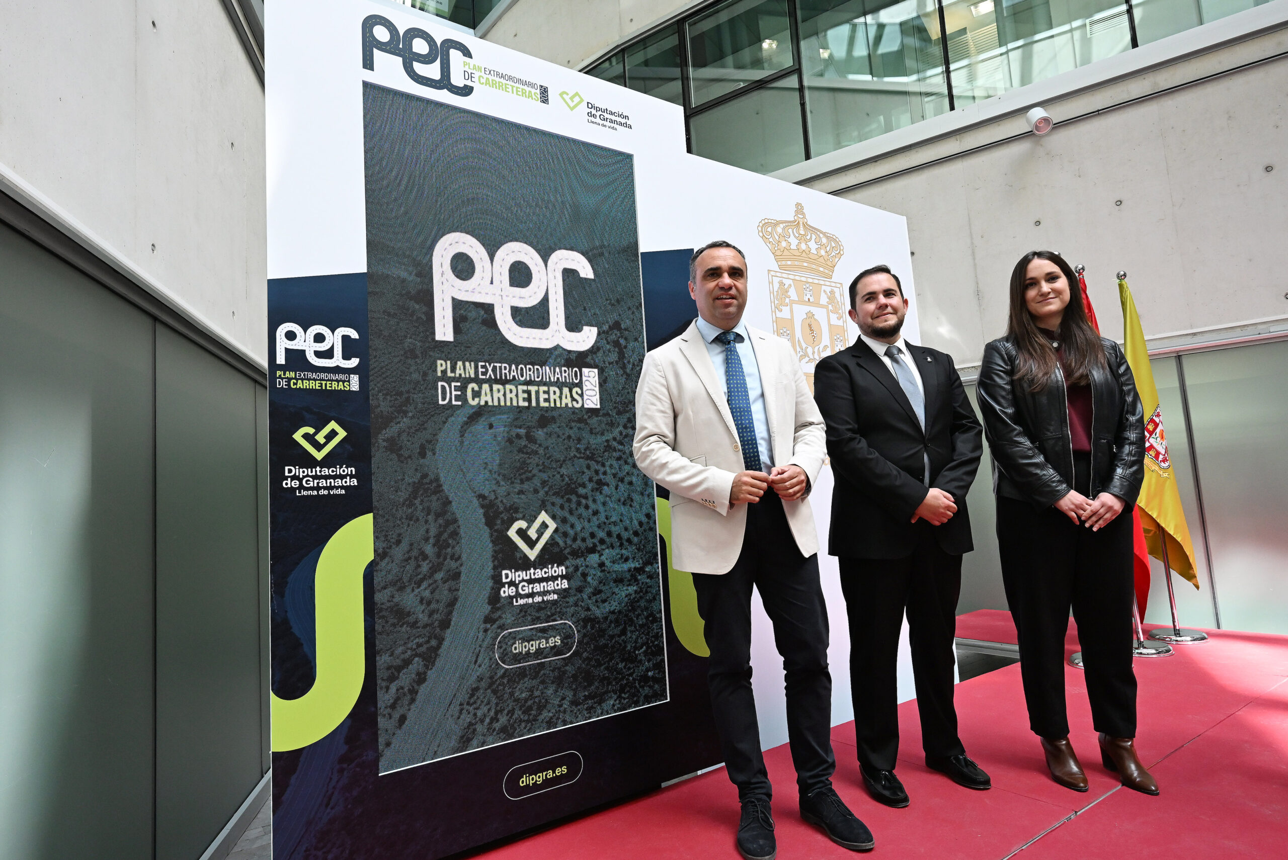 El presidente de la Diputación de Granada, Francis Rodríguez, junto al diputado de Obras Públicas y Vivienda, José Ramón Jiménez, y la diputada de Reto Demográfico y Contratación, María Vera, ha presentado el nuevo Plan Estratégico de Carreteras de la institución, que supondrá una inversión histórica de más de 16 millones de euros para modernizar y acondicionar la red viaria provincial. Este plan da continuidad al aprobado en junio de 2024, que contaba con un presupuesto de 6,9 millones de euros, y amplía su alcance con un presupuesto adicional de 9,2 millones, suponiendo un total de 16.191.120 euros para actuaciones en todas las comarcas de la provincia. El objetivo es mejorar la seguridad, la movilidad y la vertebración del territorio a través de infraestructuras viarias que permitan una mejor conexión entre municipios, favorezcan el acceso a los servicios públicos y contribuyan a fijar población en el medio rural.