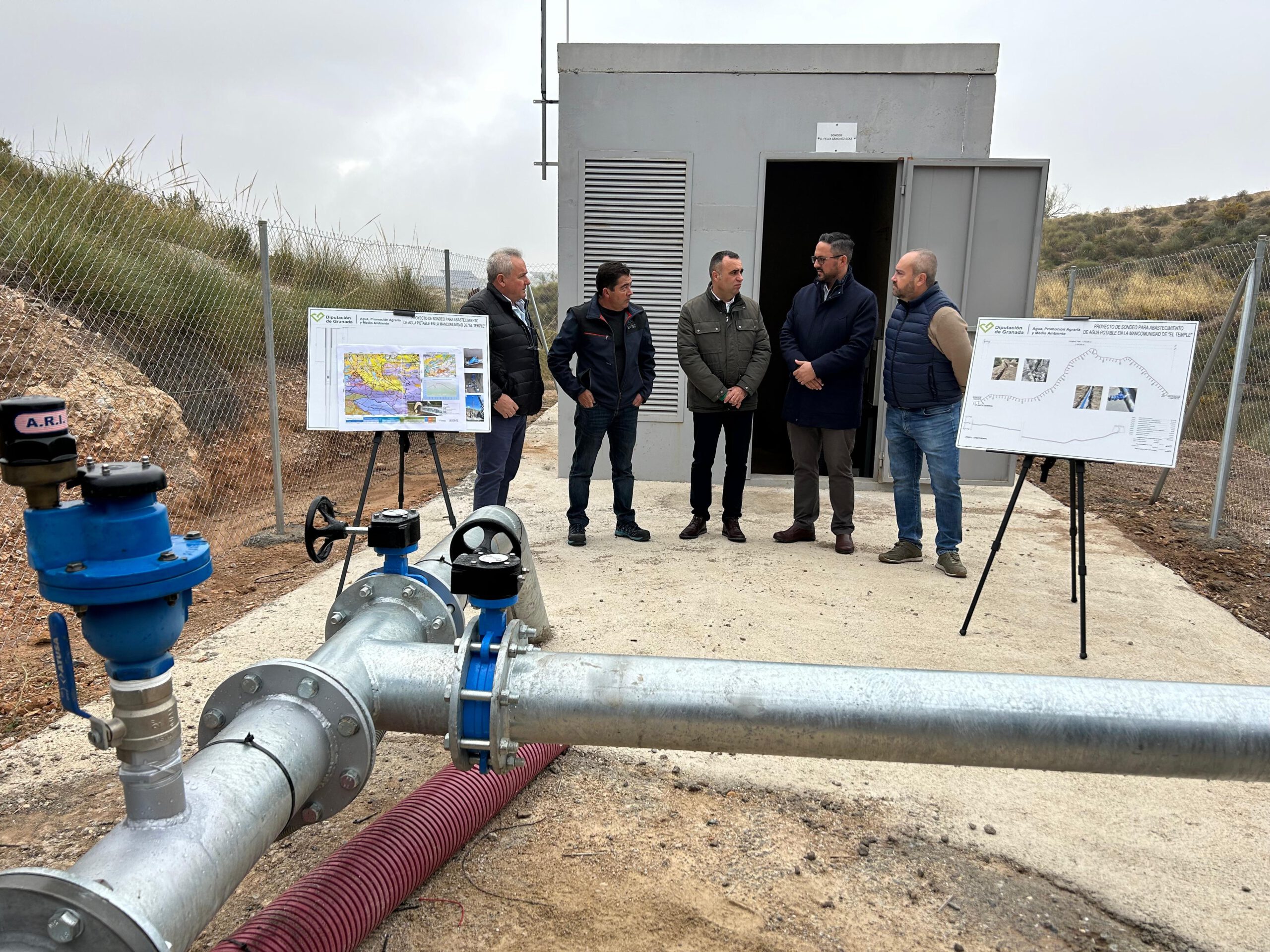 El presidente de la Diputación de Granada, Francis Rodríguez, acompañado del diputado de Agua, Antonio Mancilla, y el presidente de la Mancomunidad El Temple, Antonio Arrabal, el alcalde de Chimeneas, Miguel Pérez, y el regidor de de Ventas de Huelma, Luis Miguel Ortiz, ha recepcionado la obra del plan de mejoras del Ciclo Integral del Agua y sondeo para abastecimiento de agua potable de la Mancomunidad El Temple. La financiación de esta actuación, que asciende a 588.000 euros, ha sido cubierta en un 70% por la institución provincial y en un 30%, por la Mancomunidad El Temple.