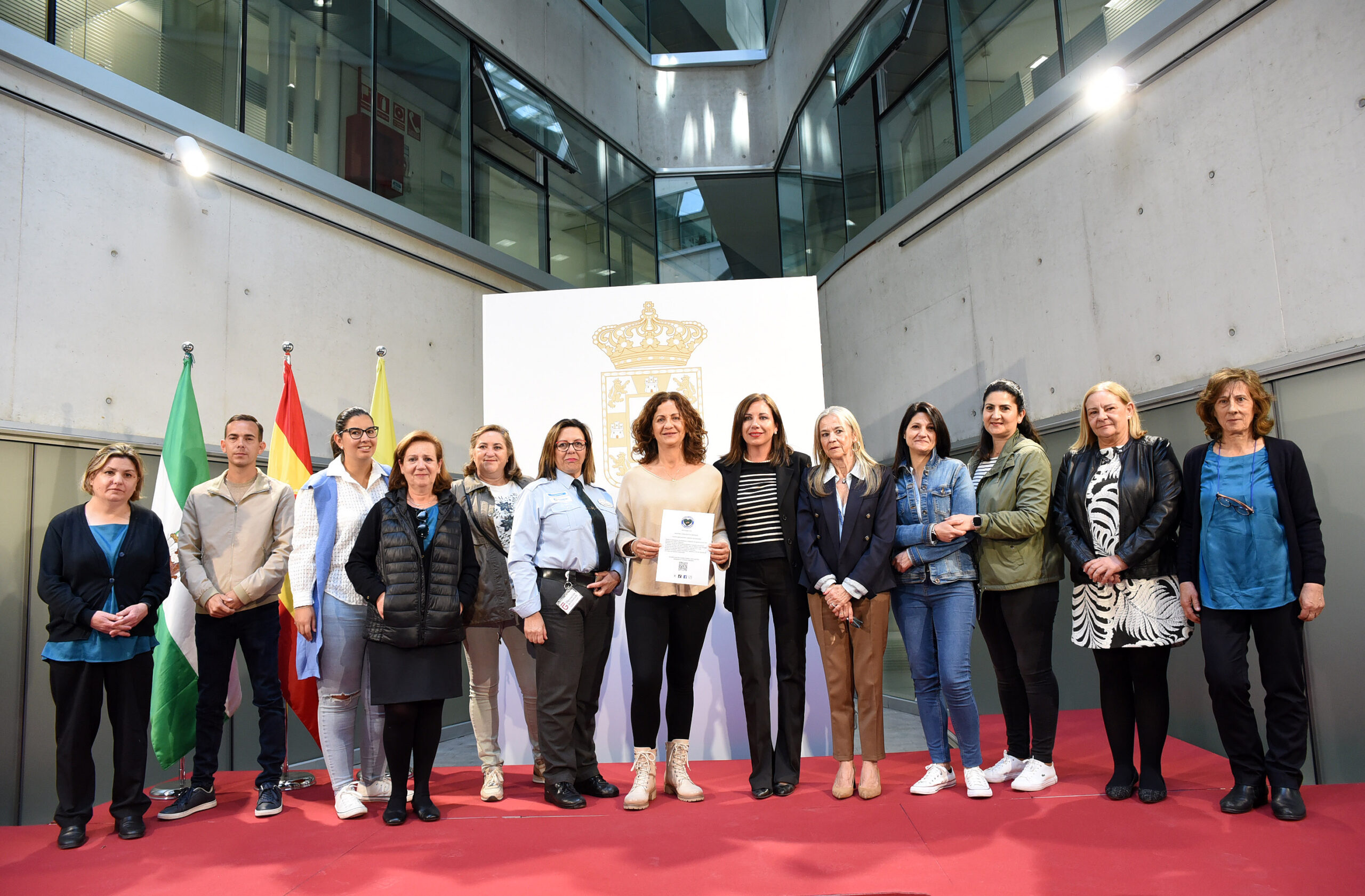 La vicepresidenta IV de la Diputación de Granada, Mónica Castillo de la Rica, acompañada de representantes de la Plataforma Nuestro Corazón por Bandera, ha señalado que “es fundamental que se valore el sacrificio diario que realizan estos hombres y mujeres en la defensa de nuestra seguridad y orden público”