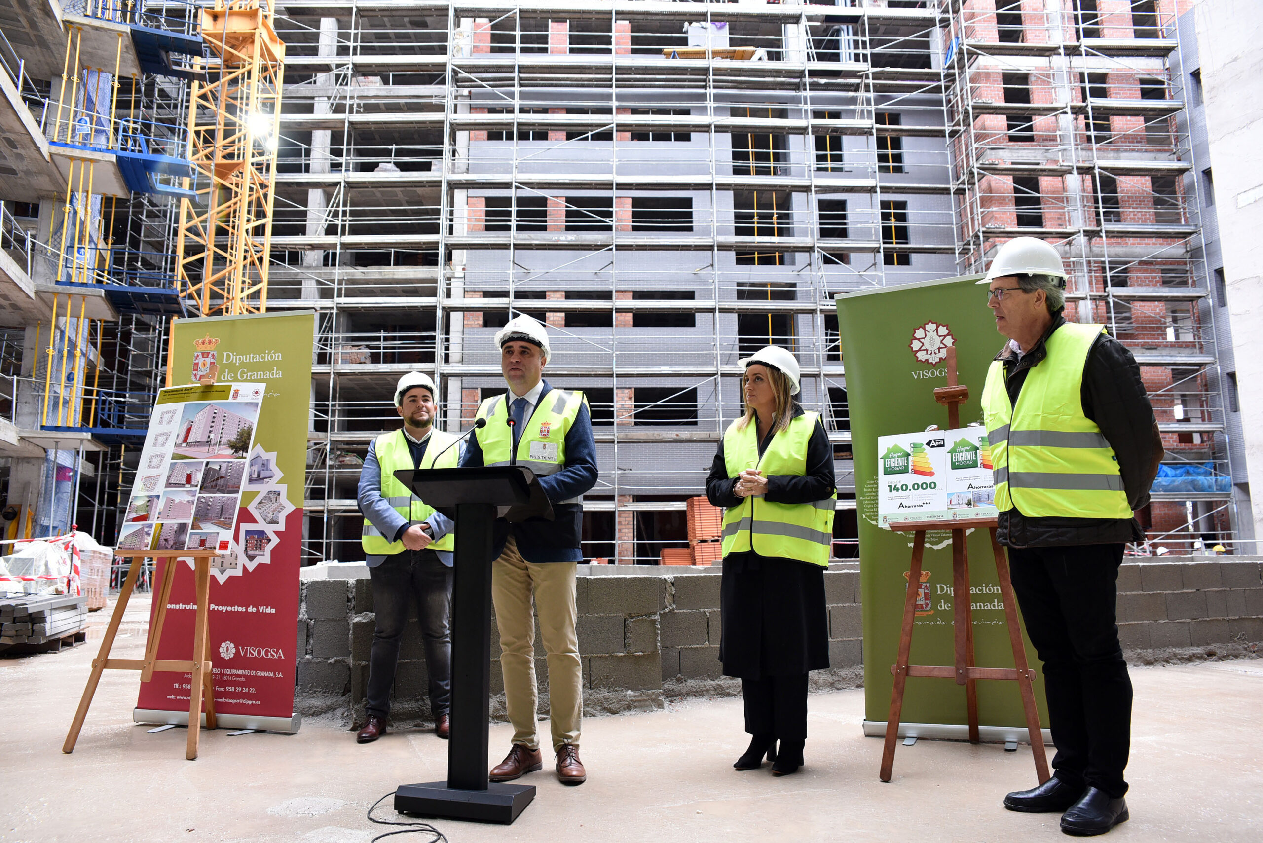 El presidente de la Diputación Provincial de Granada, Francis Rodríguez, y la alcaldesa de la capital, Marifrán Carazo, han visitado esta mañana las obras del ‘Residencial Abril’, un innovador edificio de 153 viviendas protegidas en régimen de precio limitado que promueve la Empresa Provincial de Vivienda, Suelo y Equipamiento (VISOGSA) de la institución provincial.