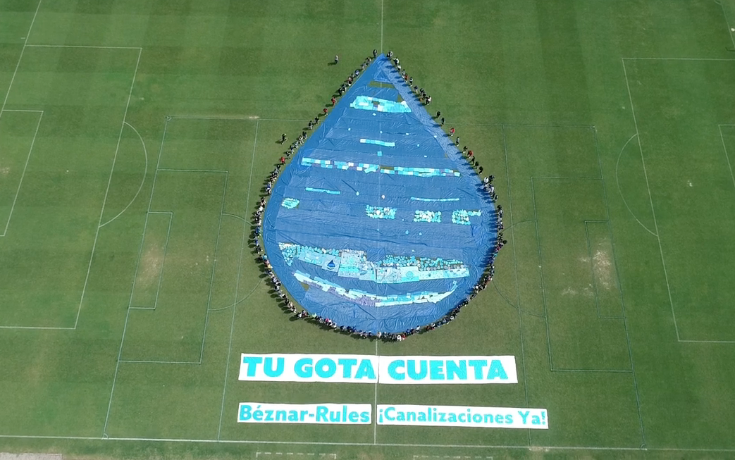 Más de 1000 alumnos conformaron sobre 3.000 m2 en una espectacular acción una Gota Mosaico Colosal de más de 60m de altura