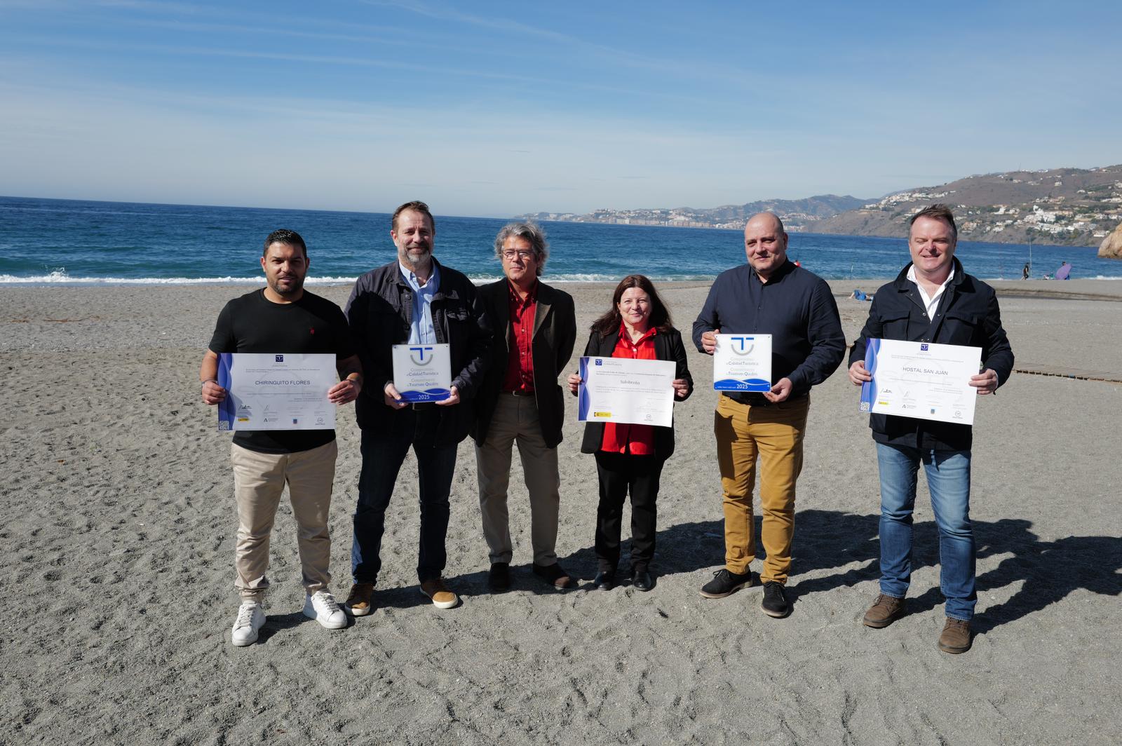 El chiringuito Flores y el Hostal San Juan han sido los primeros establecimientos de la Villa distinguidos con el sello de calidad SICTED. El alcalde de Salobreña, Javier Ortega Prados y la primera teniente de alcalde de turismo, Mª Carmen Rodríguez Callejón, han sido los encargados de entregar los diplomas y placas acreditativas que certifican el cumplimiento de los mayores estándares de calidad exigidos por este Sistema Integral de Calidad Turística en Destino que actualmente lleva a cabo el Ayuntamiento de la Villa.