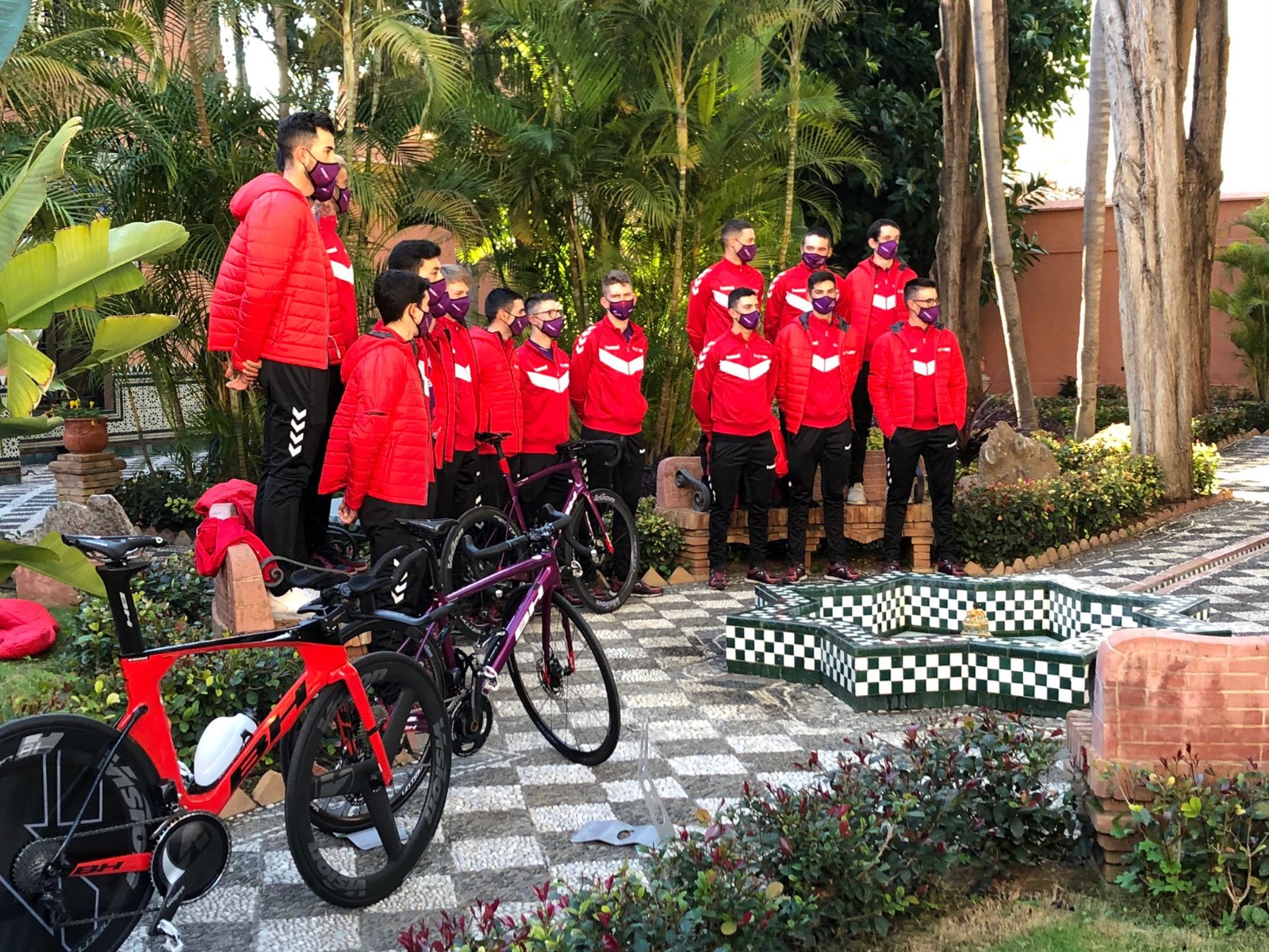 La bella imagen de los Jardines y el Palacete de La Najarra, sede del Patronato Municipal de Turismo de Almuñécar-La Herradura ha sido escenario para la realización de la fotografía oficial de la temporada 2021 del equipo profesional de ciclismo Proteam Burgos BH, que esta temporada ha incorporado al granadino, Chupe. Con anterioridad a ello, el teniente de alcalde delegado de Turismo y Playas, Daniel Barbero, junto con el director del Ente turístico sexitano, Felipe Puertas, dieron la bienvenida a los componentes del equipo.