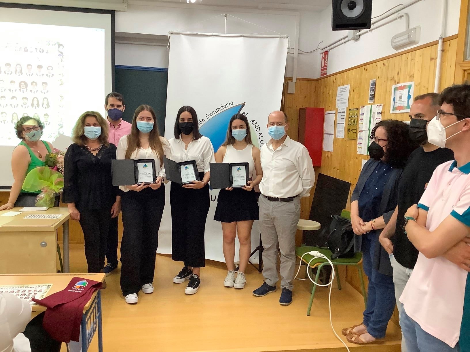 Por su parte, los delegados de los alumnos apenas pudieron dar unas emocionadas “gracias”, aunque si hicieron entrega de sendos ramos de flores a sus tutores, antes de conocer las tres Matrículas de Honor que se podían entregar por el IES Al Andalus y que fueron para tres alumnas: Lucía Martos Olivares, Marta Sánchez García y Julia Cremor Fernández.
