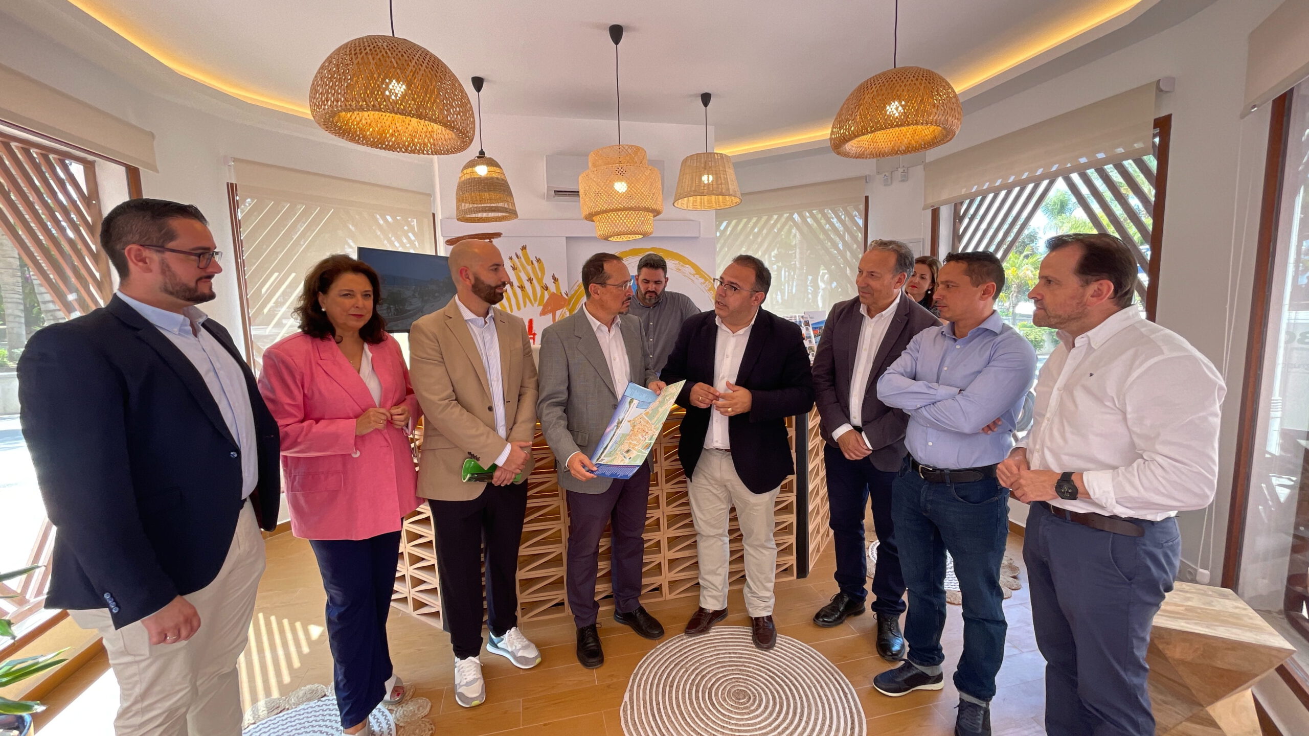 El alcalde sexitano, Juanjo Ruiz Joya, y el concejal de Turismo, Daniel Barbero, han recibido al delegado de Turismo de la Junta de Andalucía en Granada, Fernando Egea, para el acto inaugural, de “una oficina que tiene un toque tropical, emulando a un chiringuito por dentro, con lo que cerramos un círculo al completarse la rehabilitación, primero del Palacete de la Najarra, posteriormente, la oficina de Turismo de La Herradura, ubicada en el mercado municipal y hoy ésta, en un lugar emblemático de Almuñécar, como es el paseo del Altillo”, ha explicado Juanjo Ruiz Joya en su intervención.