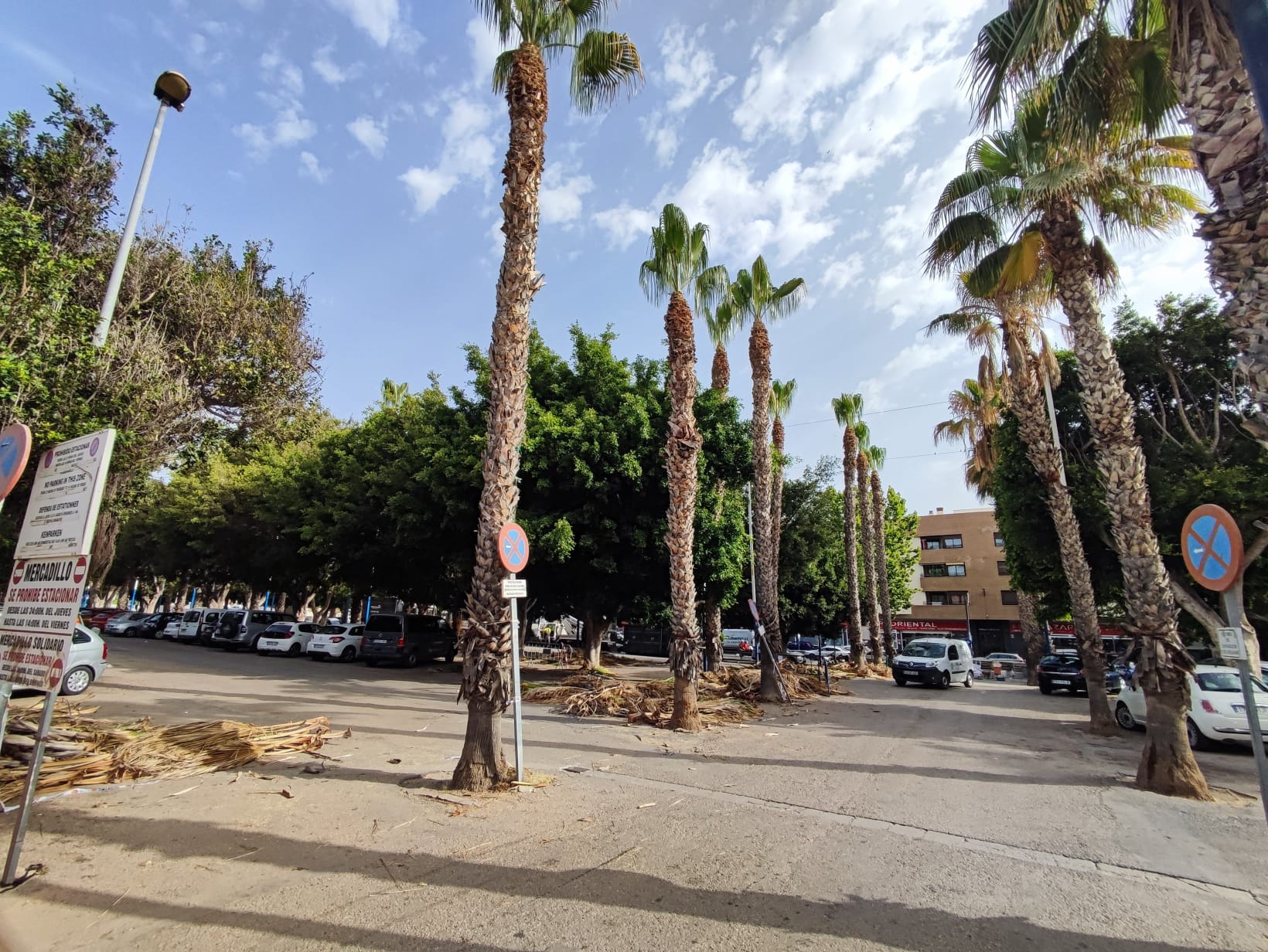 “Los trabajos se han llevado a cabo por parte de la empresa adjudicataria de Jardines, de forma sectorizada con el fin de evitar las menores molestias posibles en el aparcamiento. Se trata de palmeras de gran altura situadas entre los ficus para lo cual ha sido necesario la utilización de máquinas elevadoras que alcanzarán los ejemplares. La retirada de las hojas cortadas han ocupado varios contenedores”, según ha explicado el edil del Área, Luis Aragón.