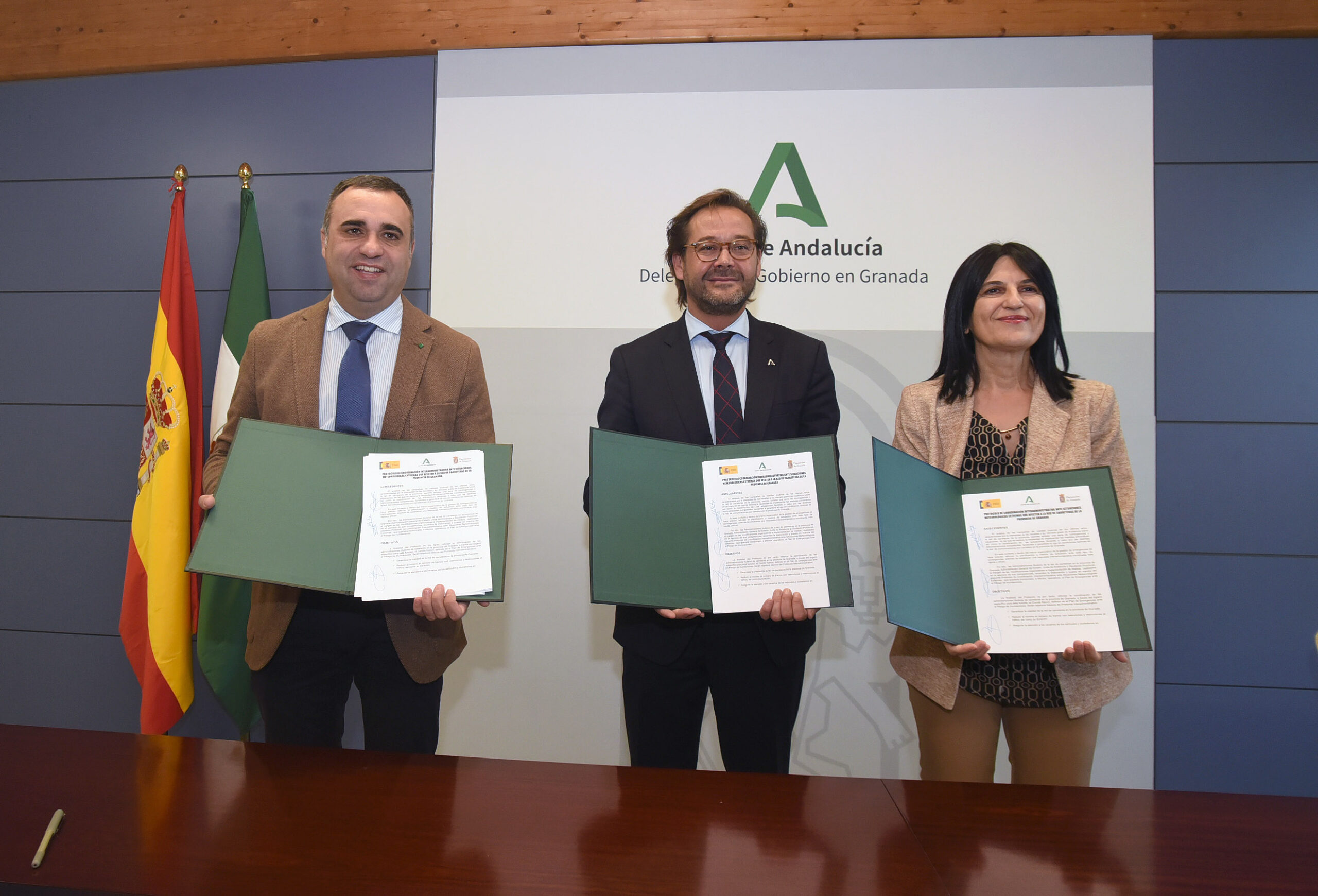 El delegado del Gobierno, el presidente de la Diputación y la subdelegada del Gobierno firman el protocolo de coordinación del ‘Plan de Emergencias ante el Riesgo de Inundaciones