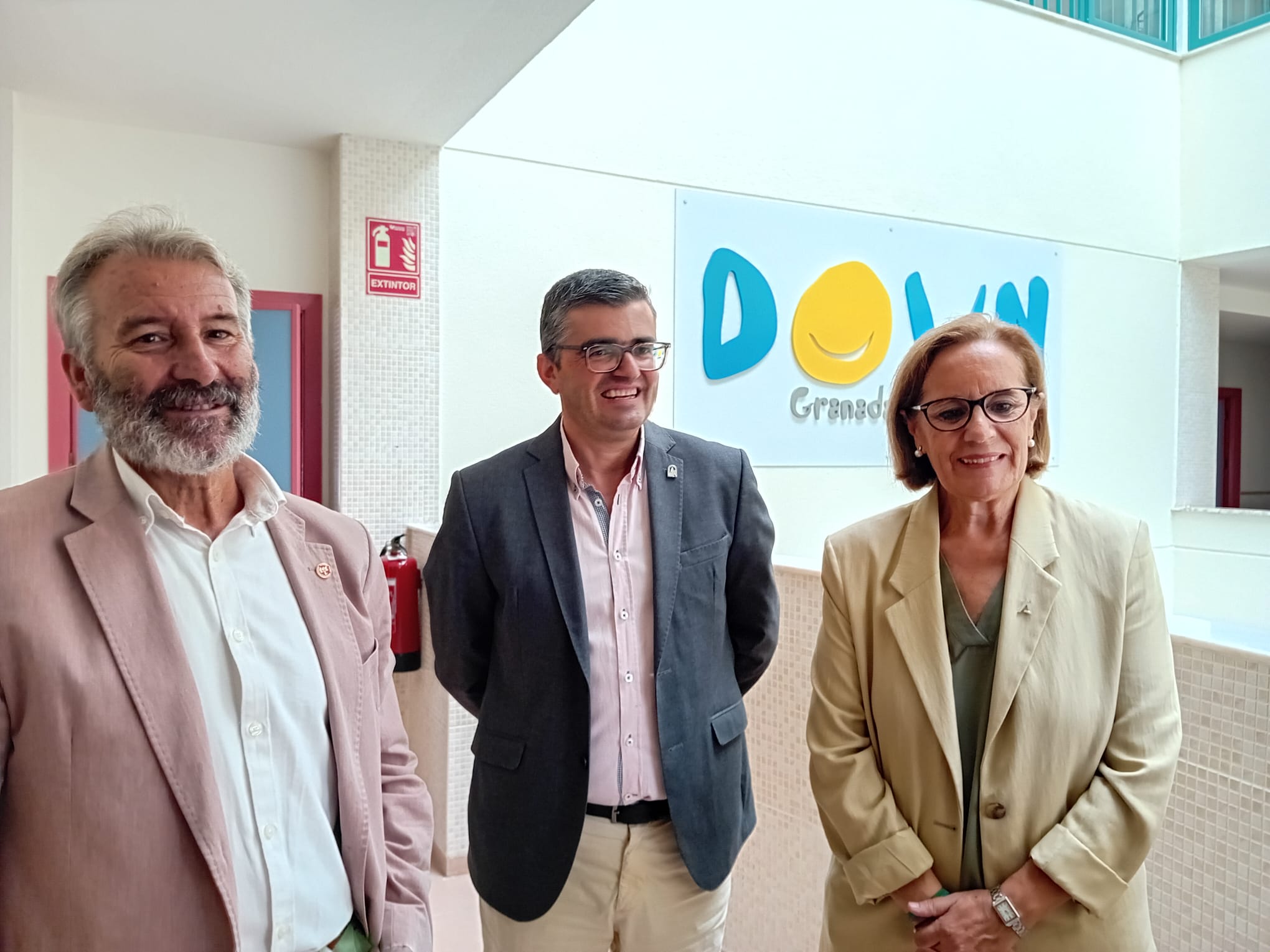 Los delegados territoriales de Empleo e Inclusión Social, José Javier Martín y Matilde Ortiz, y el presidente de Down Granada, Francisco Hidalgo, han mantenido esta mañana un encuentro con los alumnos-trabajadores del proyecto de Empleo y Formación de la entidad, una iniciativa puesta en marcha por la Junta y la asociación granadina para ayudar a las personas con discapacidad de la provincia a encontrar un empleo.