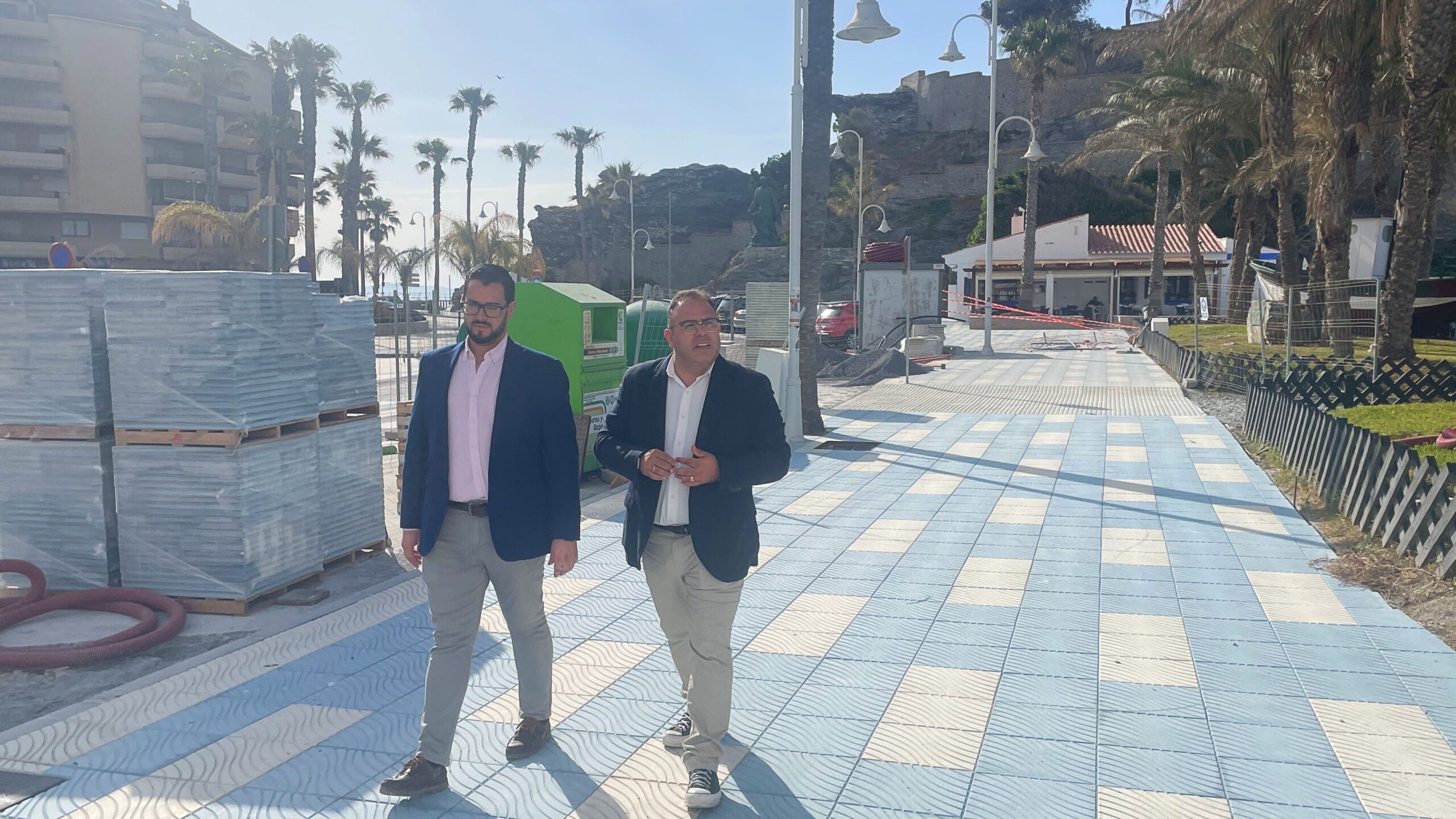 El alcalde de Almuñécar, Juanjo Ruiz Joya, y el concejal de Obras Públicas, Francisco Rodríguez, han visitado las obras de sustitución de la solería del paseo de las Flores en San Cristóbal, que en breve pasará a denominarse paseo Miguel Ángel Blanco por acuerdo plenario del pasado mes.