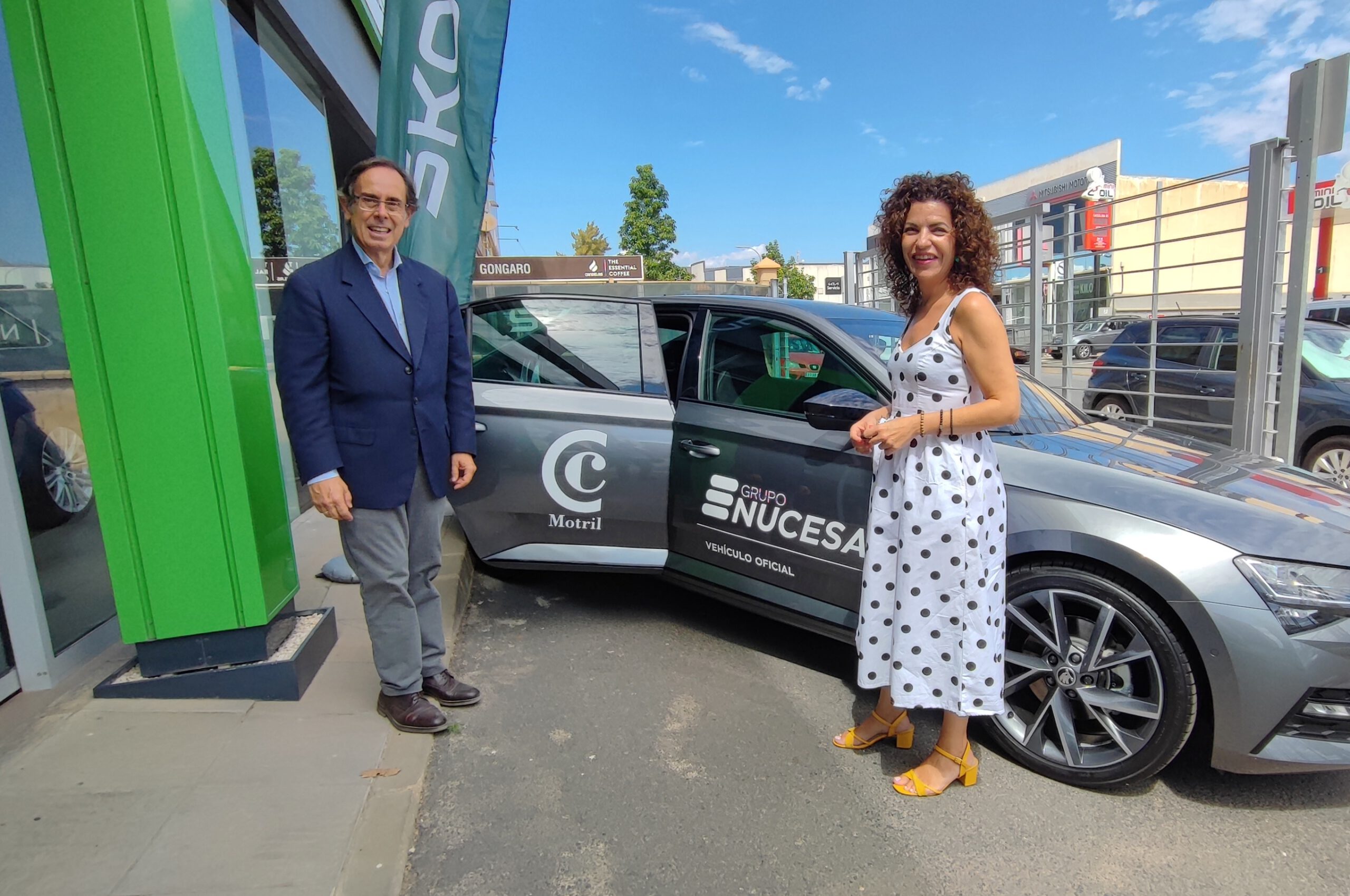 La colaboración se ha hecho patente en el encuentro que han mantenido el presidente de la Cámara de Comercio de Motril, Julio Rodríguez Martín-Feriche, y la gerente de Skoda en Grupo Nucesa, Beatriz Cervilla, en las instalaciones del concesionario en Motril, donde se ha producido la entrega del vehículo rotulado con los logos de ambas instituciones.