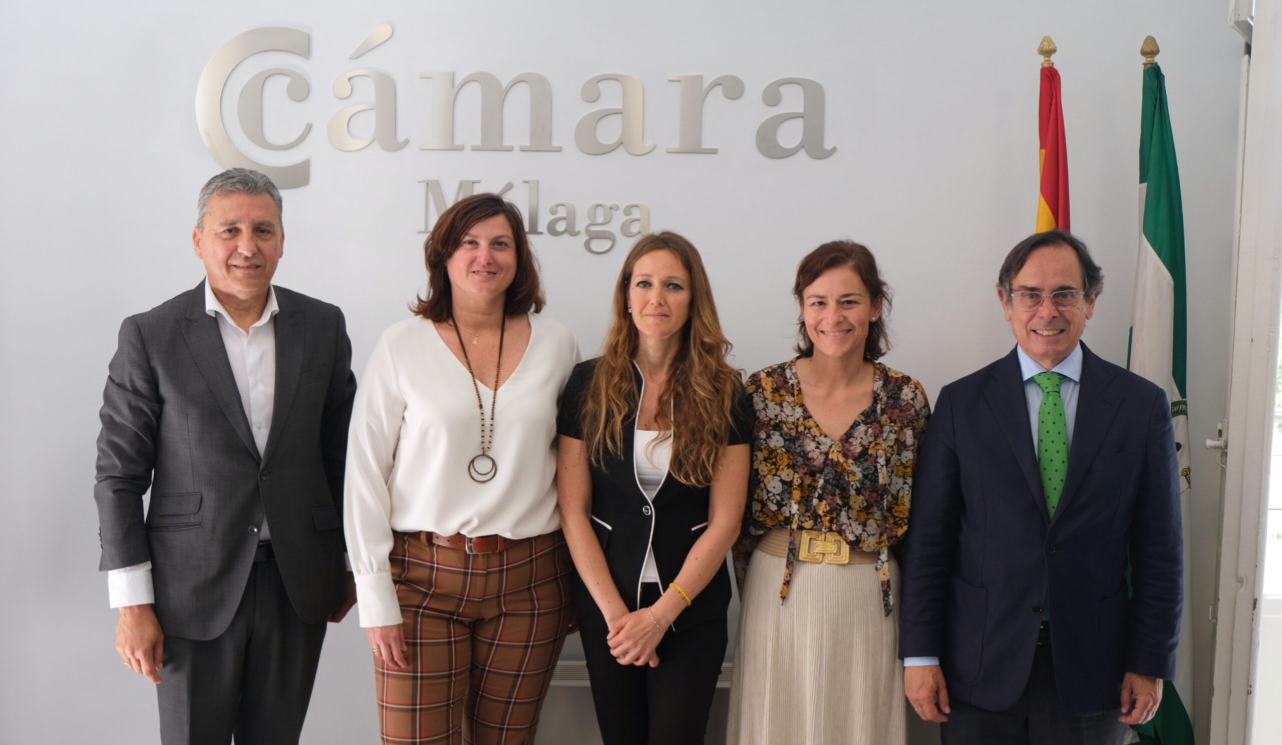 La Cámara de Motril ha girado una visita a la sede de la Cámara de Comercio de Málaga en la que ha conocido los proyectos de la organización a través de su directiva, encabezada por su presidente, Sergio Cuberos, y los miembros del Pleno cameral, Juan José Vallejo y Javier Noriega, así como la presidenta de AMUPEMA, Rocío García.