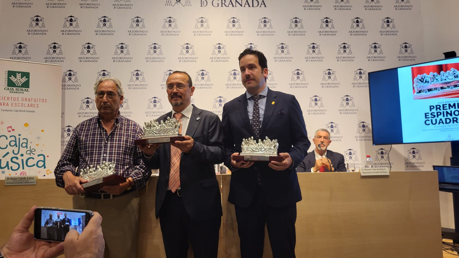 La Consejería de Turismo,  Cultura y Deporte ha recibido el premio Espinosa Cuadros, en su XVII edición, que concede la Federación de Cofradías de Granada. El delegado territorial, Fernando Egea, ha recogido el galardón que  “reconoce la labor de la institución en favor del patrimonio de las Cofradías y el Arte Sacro de la ciudad”, que se entregó en la sede de la sede Curia eclesiástica. La Consejería ha respaldado obras como las de Jesús del Rescate,  los retablos de las Comendadoras o de Jesús de la Meditación y el palio de la Victoria.
