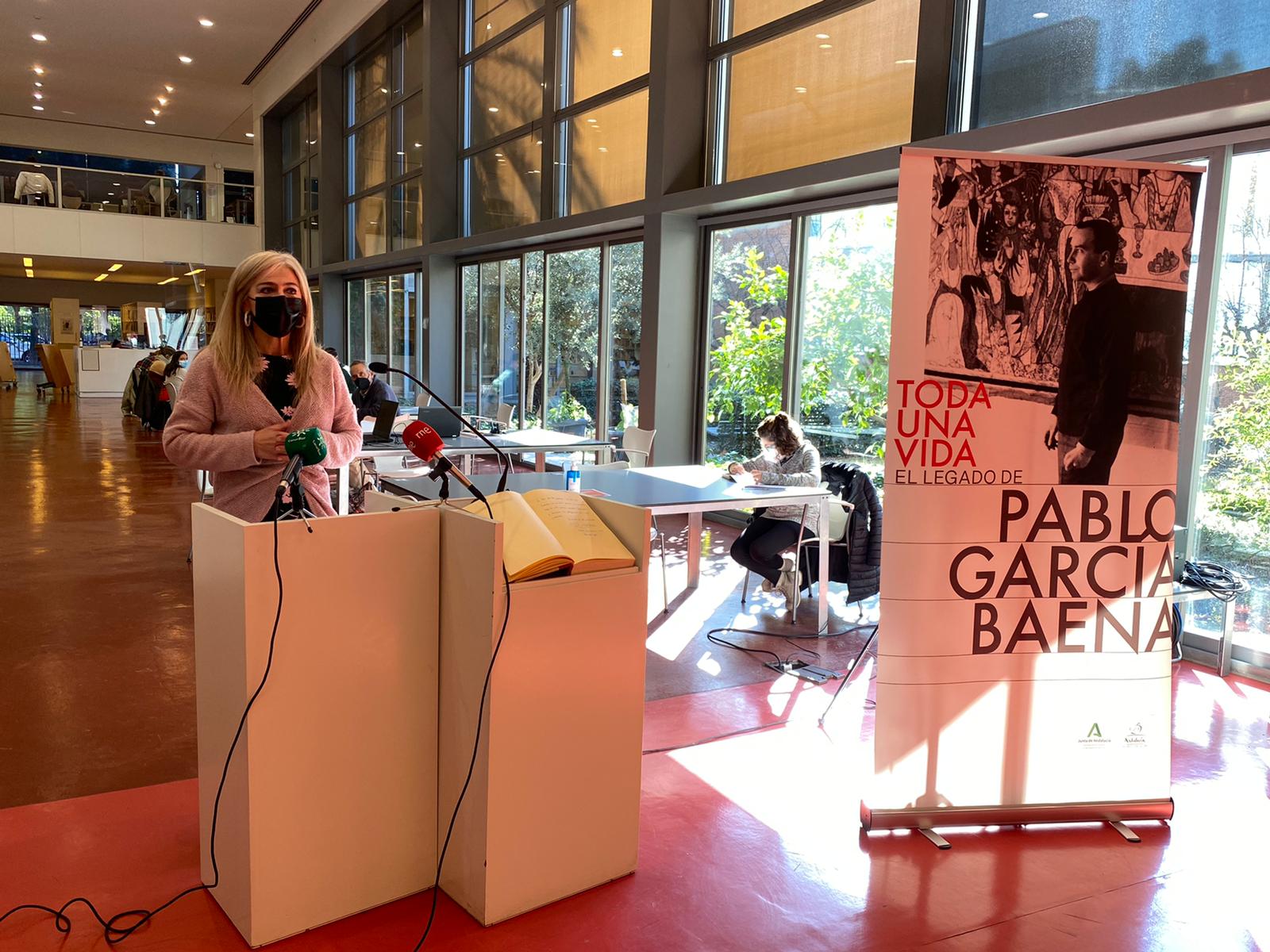 La consejera de Cultura y Patrimonio Histórico, Patricia del Pozo, ha inaugurado esta mañana en la Biblioteca Provincial de Sevilla Infanta Elena la exposición ‘Toda una vida. El legado de Pablo García Baena’ que reúne una selección de la donación de libros, manuscritos, cartas y fotografías realizada a la Junta de Andalucía por la familia del poeta. La muestra, que ya pudo verse en la Biblioteca de Andalucía y ahora llega a la capital hispalense, recorrerá todas las bibliotecas públicas provinciales: Huelva, Cádiz, Málaga, Almería, Jaén y Córdoba, ciudad natal del escritor, como destino final.