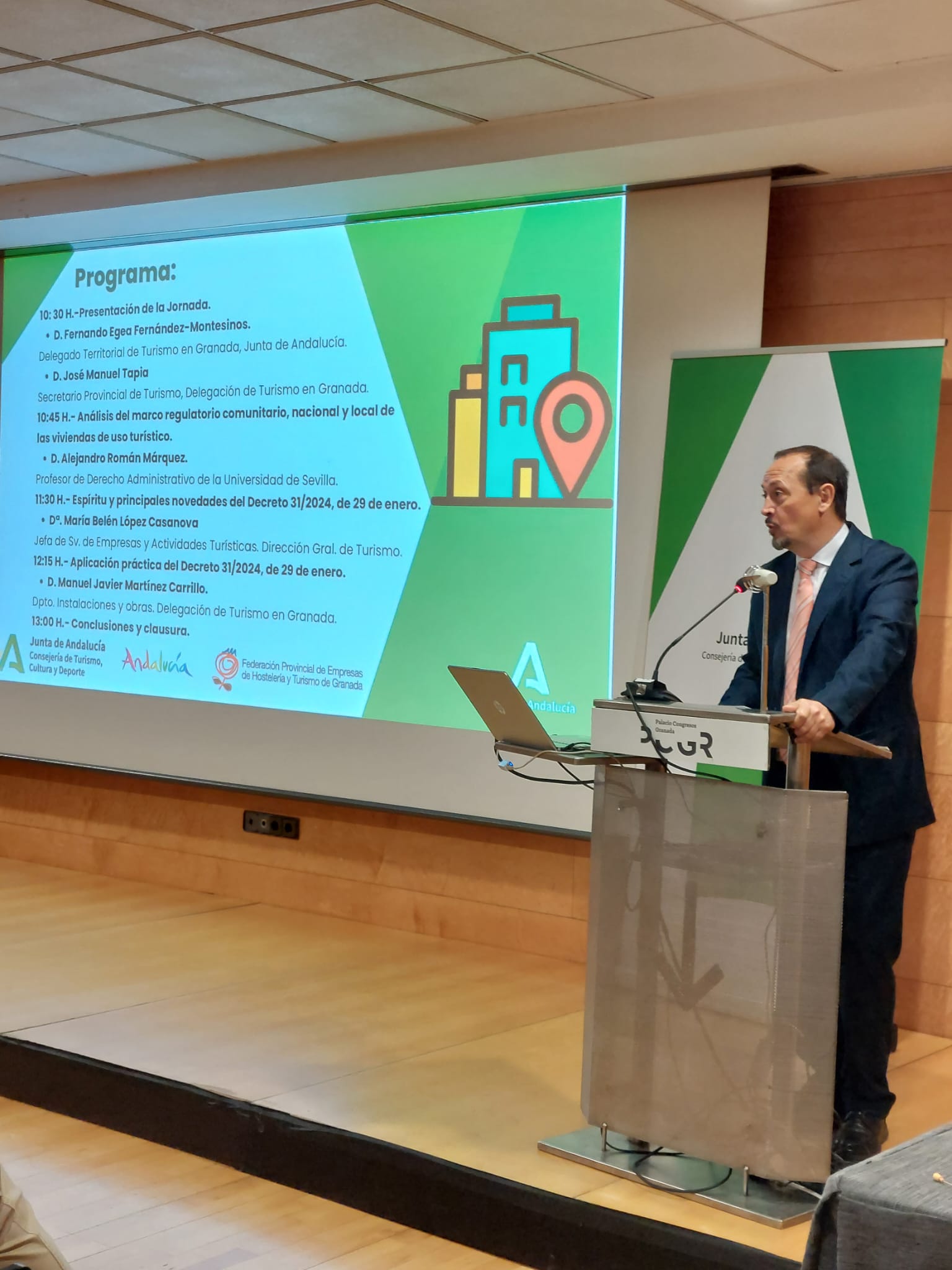 Según Egea,la provincia de Granada cuenta con 7.878 viviendas de uso turístico registradas y de ellas, 3.420 están en la capital y en Andalucía hay 125.478 viviendas de uso turístico inscritas en el Registro de Turismo de Andalucía. “Vamos a profundizar sobre la situación de las viviendas de uso turístico y sobre el decreto 31/2024 del pasado febrero”.