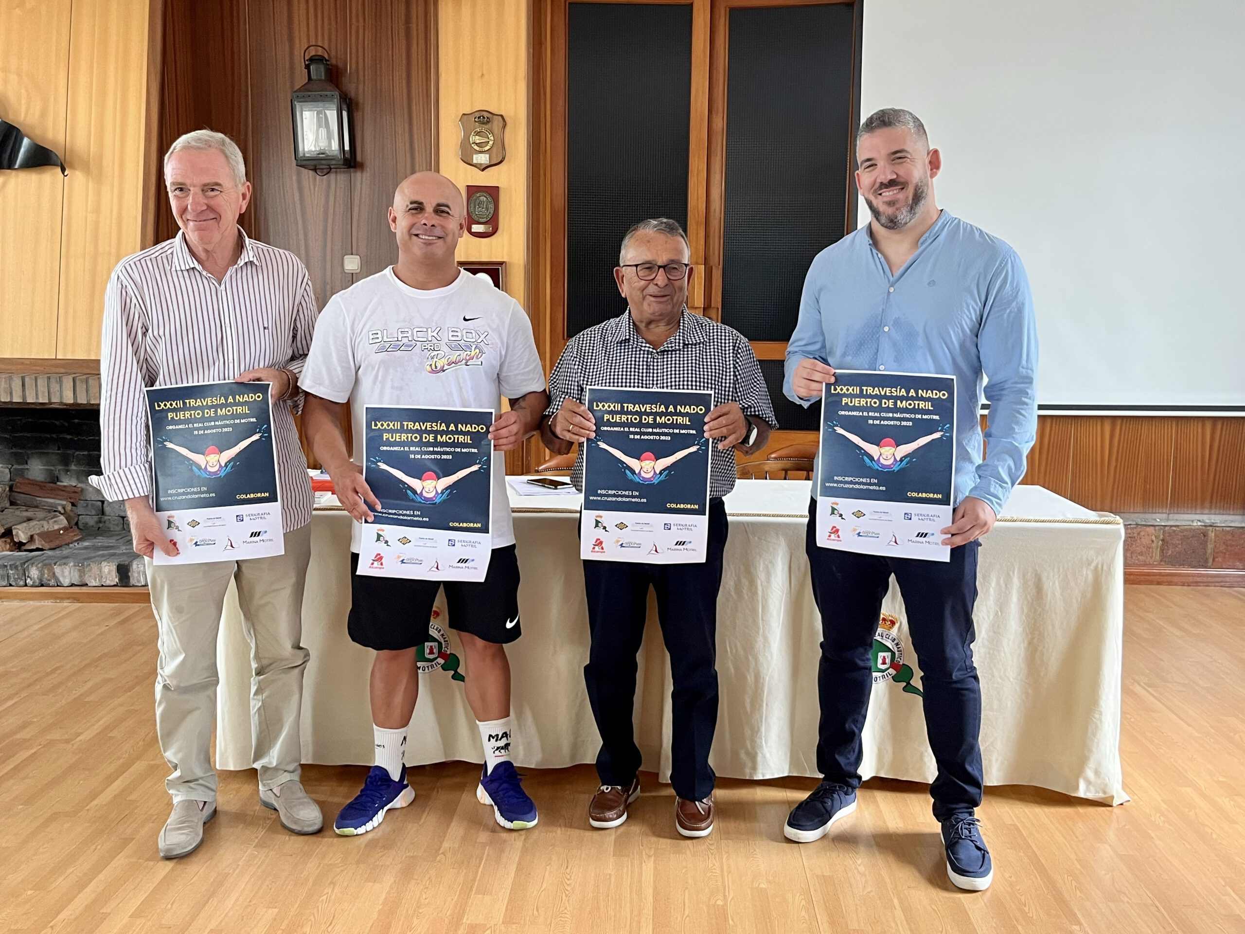 El teniente de alcalde de Deportes, Daniel Ortega Moreno, el presidente del Real Club Náutico de Motril, Antonio Gutiérrez Maldonado, el vocal responsable del club de natación del Club Náutico, Antonio Puertas, y el director técnico de la sección de natación, David Romero, han presentado hoy la LXXXII Travesía a Nado del Puerto de Motril.