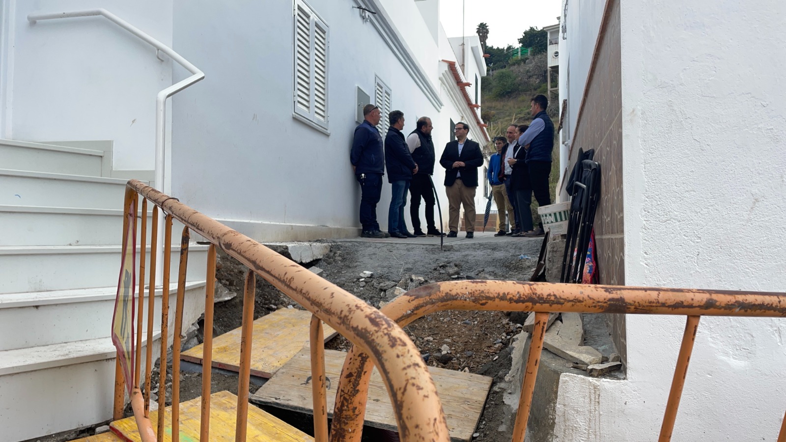 El presidente de la Mancomunidad de la Costa Tropical, Rafael Caballero, acompañado por el alcalde de Salobreña, Pedro Javier Ortega, la delegada de la institución comarcal, Mª Carmen Vílchez, y el gerente de Aguas y Servicios, Alejandro Jurado, ha visitado varias calles del casco antiguo de la Caleta de Salobreña, donde se están llevando a cabo obras de renovación de redes de abastecimiento, saneamiento y pluviales y posteriormente la pavimentación de las calles con adoquinado.