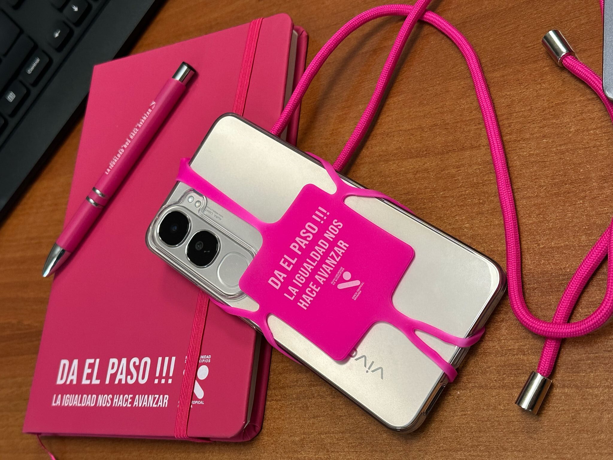 Reparte merchandising entre libretas, bolígrafos y landyard, para visualizar el apoyo de la institución comarcal a la igualdad entre mujeres y hombres