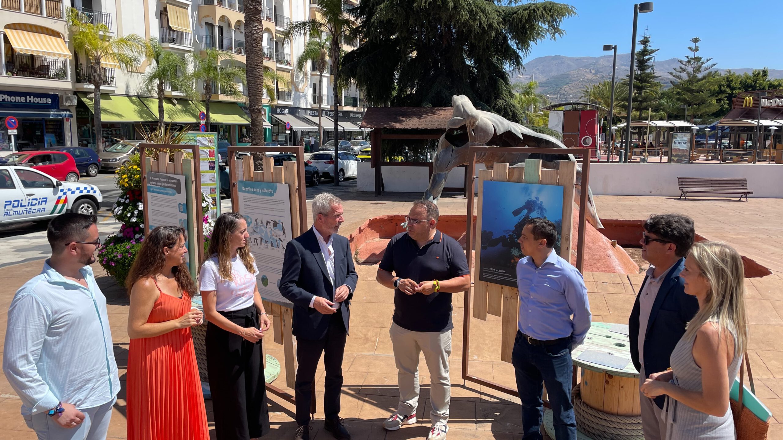 El alcalde de Almuñécar, Juanjo Ruiz Joya, acompañado por el concejal de Sostenibilidad, Carlos Ferrón, el presidente de la Autoridad Portuaria de Motril, José García Fuentes y el presidente de la Fundación Museo del Mar de Ceuta, Fernando Rodríguez, ha presentado la exposición itinerante Pleamar, ubicada en la plaza del Agua de Almuñécar, desde hoy y hasta el próximo 30 de junio, compuesta por 14 paneles, cuatro informativos y 10 con fotografías representativas de los proyectos ejecutados durante las cinco convocatorias de ayudas cofinanciadas por el Fondo Europeo Marítimo y de Pesca (FEMP) con 24 millones de euros, entre ellos, el Parque Azul de Vida Submarina de Almuñécar.