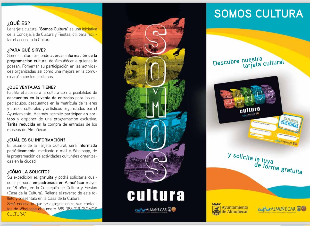 De igual modo, ha recordado que el principal objetivo de esta tarjeta es “facilitar el acceso a la cultura, acercar la información de la programación cultural de Almuñécar a quienes la posean y fomentar la participación en las actividades organizadas, con una mejora en la comunicación con los sexitanos y residentes”.Para concluir, Alberto García Gilabert ha animado a las personas mayores de 18 años interesadas en hacerse con la Tarjeta Cultural a inscribirse y obtener la misma, de manera gratuita, de lunes a sábado, de 11 a 13 horas, en la Casa de de la Cultura, o bien, visitando la página https://www.almunecar.es/solicitud-tarjeta-cultural/