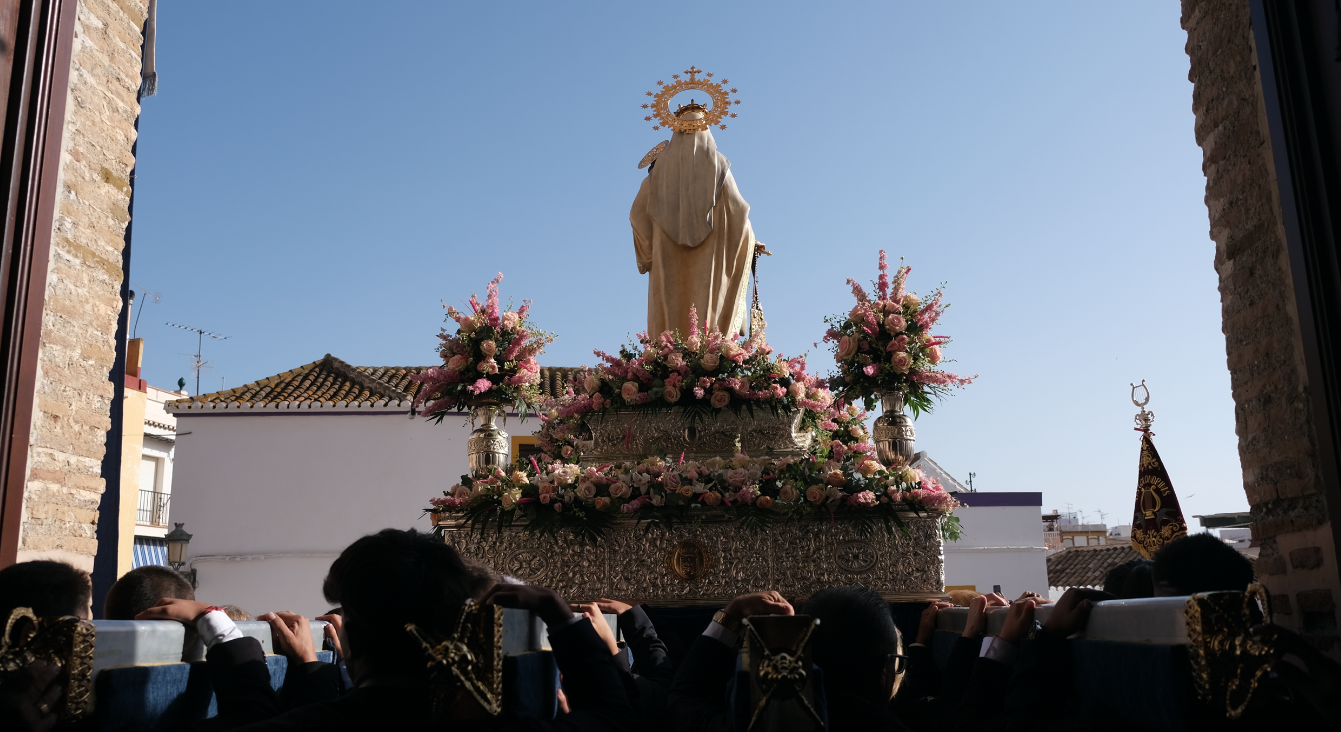 Una vez realizado el emotivo homenaje, que llenó la plaza, la Virgen volvió a subir la cuesta de la iglesia para hacer un recorrido por la Carrera de la Concepción, avenida de Andalucía, plaza de Madrid, paseo del Altillo, paseo Prieto Moreno, plaza de San Cristóbal, paseo de las Flores, paseo de la China, avenida del Mediterráneo y a su templo.