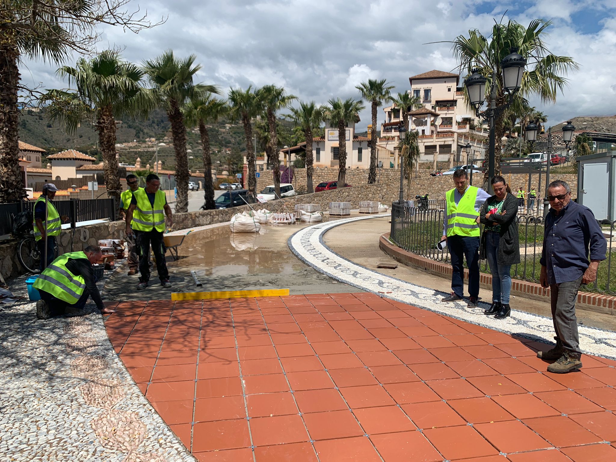 “Hemos comprobado gratamente que los trabajos que se vienen realizando en esta Plaza Mirador, consistentes en un rehabilitación integral, dado lo deteriorada que estaba provocada por las raíces de árboles que habían levantado el pavimento, se van cumpliendo dentro del calendario previsto”, según ha manifestado la edil sexitana de Obras