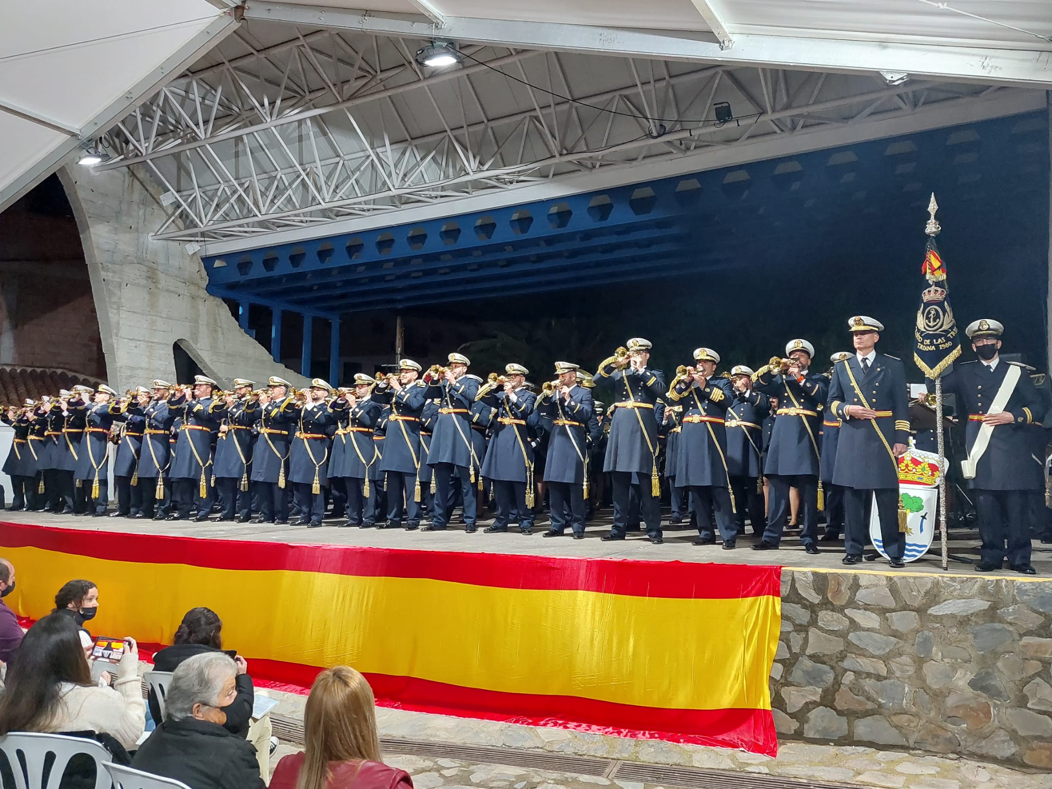 El presentador hacía subir al escenario, adecentado con una gran bandera de España, a la Concejal de Fiestas Dª Aida Prados Pérez, que era recibida con un fuerte aplauso por los presentes. Algunas de sus palabras fueron: “Es un verdadero honor poder acoger en nuestro municipio, a las 3 bandas invitadas que hoy acompañan a la anfitriona, la Banda Municipal de Música de Molvízar…me gustaría destacar y agradecer, a cuantas personas han contribuido a que podamos celebrar este maravilloso encuentro”. “No hay mejor forma de celebrar la nueva normalidad, como preservando algo tan nuestro y que tan arraigado está a Molvízar, Andalucía y a España, la música y sus bandas. Es por ello, que mostramos nuestro agradecimiento al mundo Cofrade, y a sus músicos y mostrarles el afecto y cariño que sentimos hacia ellos con un caluroso aplauso”. “Querida Banda de Música de Molvízar. ¡¡Enhorabuena!! No hay mayor honor para uno en la vida, que hacer lo que le gusta acompañados de figuras de primer nivel. El verdadero orgullo, es tener tan buena gente, buenos músicos que siempre están ahí leales a su pueblo…”