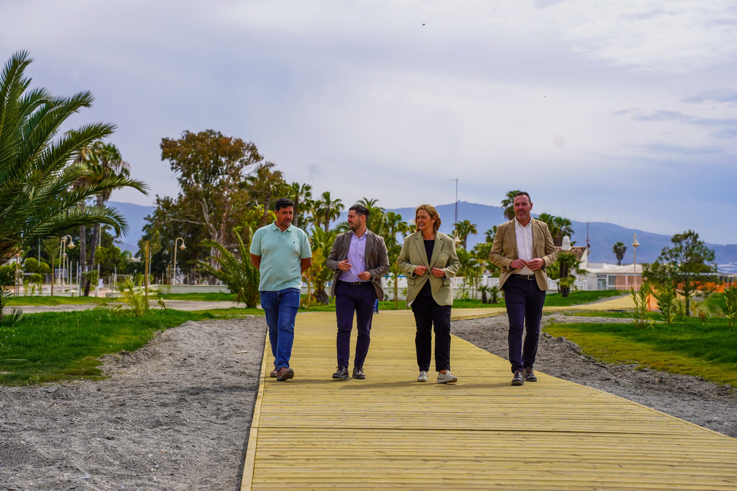 La alcaldesa de Motril, Luisa García Chamorro, acompañada del teniente de alcalde de Playas, José Peña, y el concejal de Parques y Jardines, Daniel Ortega, han visitado la playa de Poniente para ver el avance de los trabajos de la senda, que cuentan con un presupuesto de licitación de 553.561,60 euros, y una inversión global de 1,5 millones de euros, incluyendo revegetación y mobiliario urbano. Esta actuación supondrá 1.880m² de pasarela de madera, contando con una superficie total de actuación de 6.984 m².