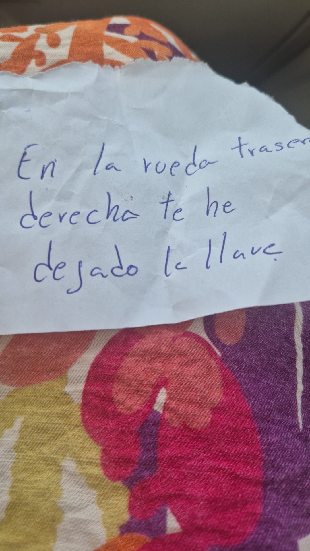 «Te he dejado la llave sobre la rueda trasera derecha del coche»