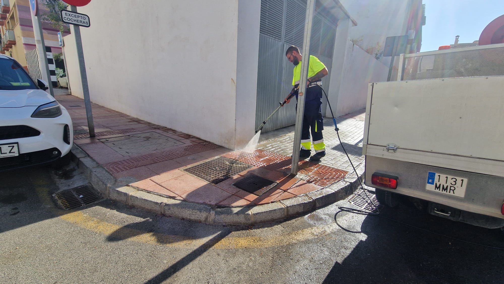 El Ayuntamiento de Salobreña ha iniciado esta semana un plan especial de limpieza para eliminar los orines de los perros además de otras manchas incrustadas en el pavimento de las aceras del municipio