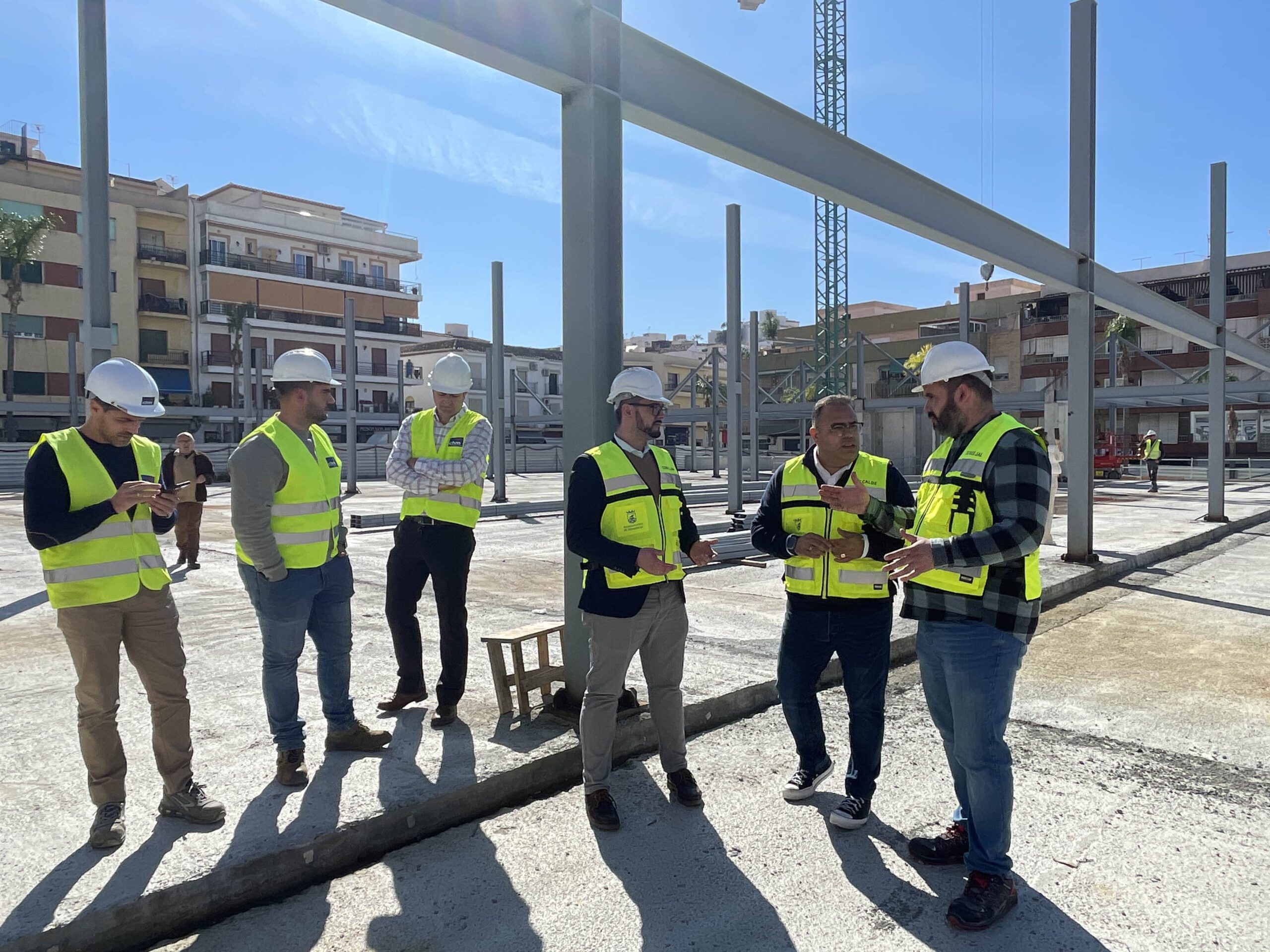 El alcalde de Almuñécar, Juanjo Ruiz Joya, acompañado por los concejales de Urbanismo y Obras Públicas, Javier García y Francisco Rodríguez, ha visitado las obras del mercado municipal de Almuñécar, que continúan a buen ritmo y ya se puede ver parte de la estructura metálica de alzado sobre rasante. Una vez finalizada esta fase, comenzará a colocarse la cubierta y posteriormente el aislamiento, para finalizar con los cerramientos.
